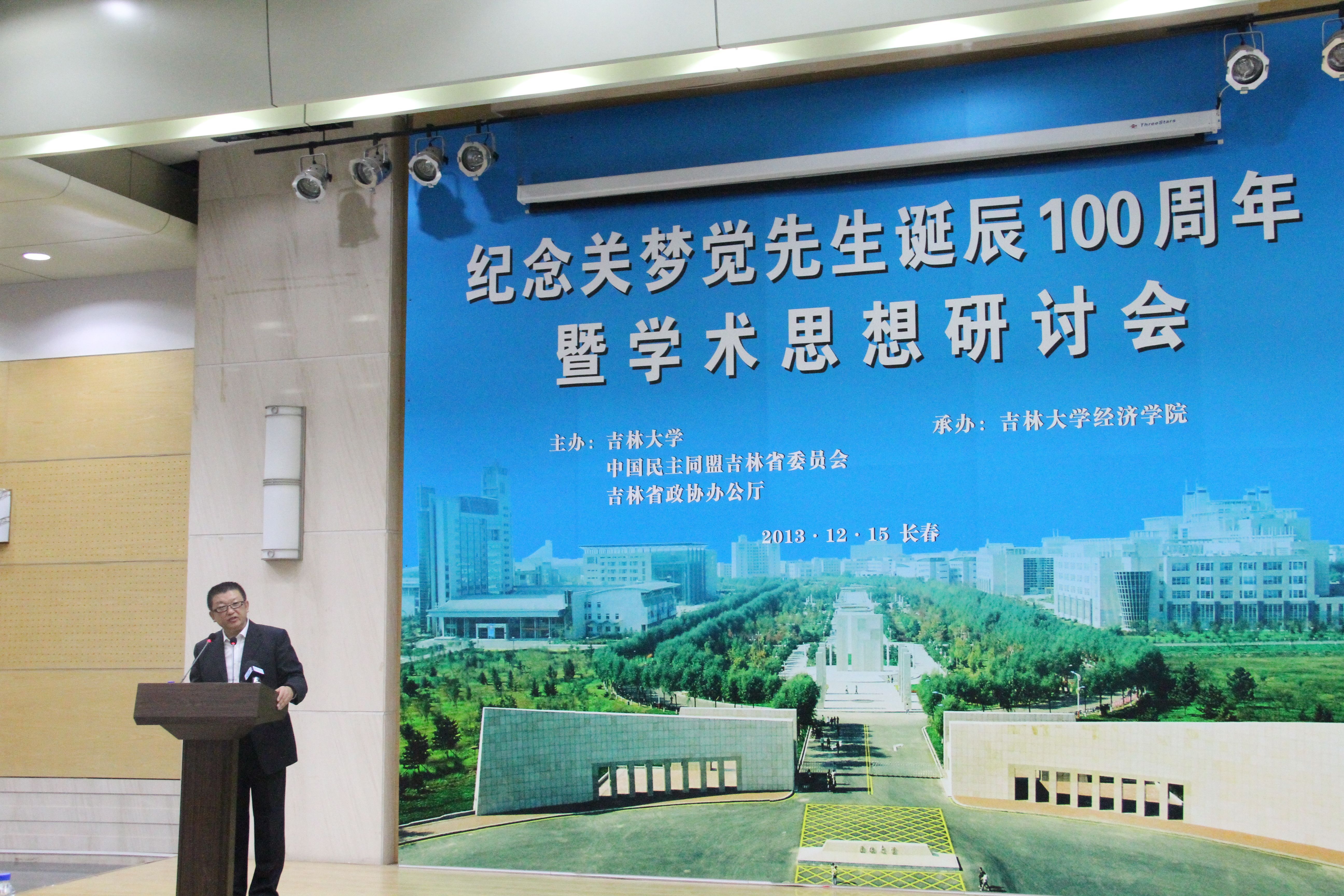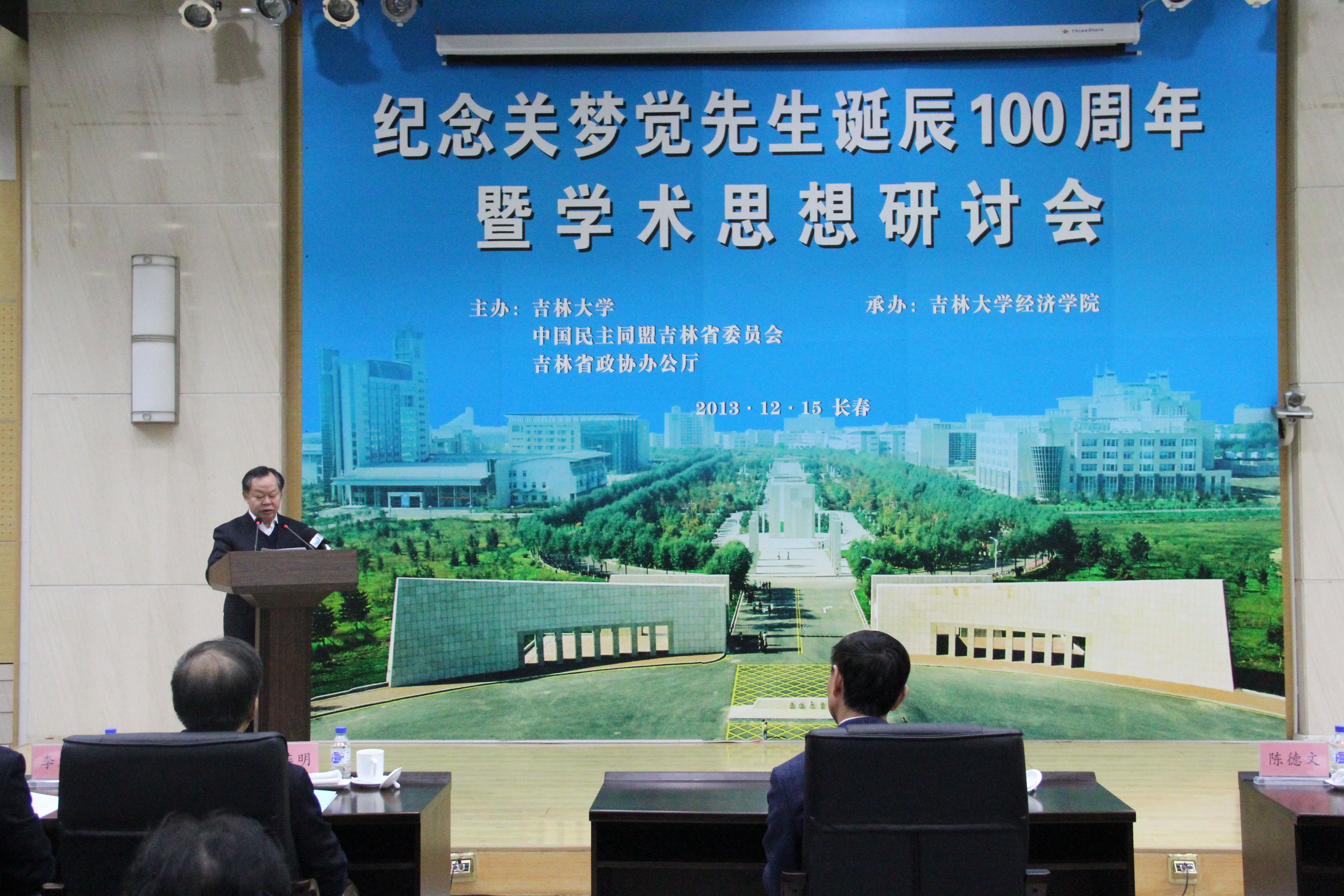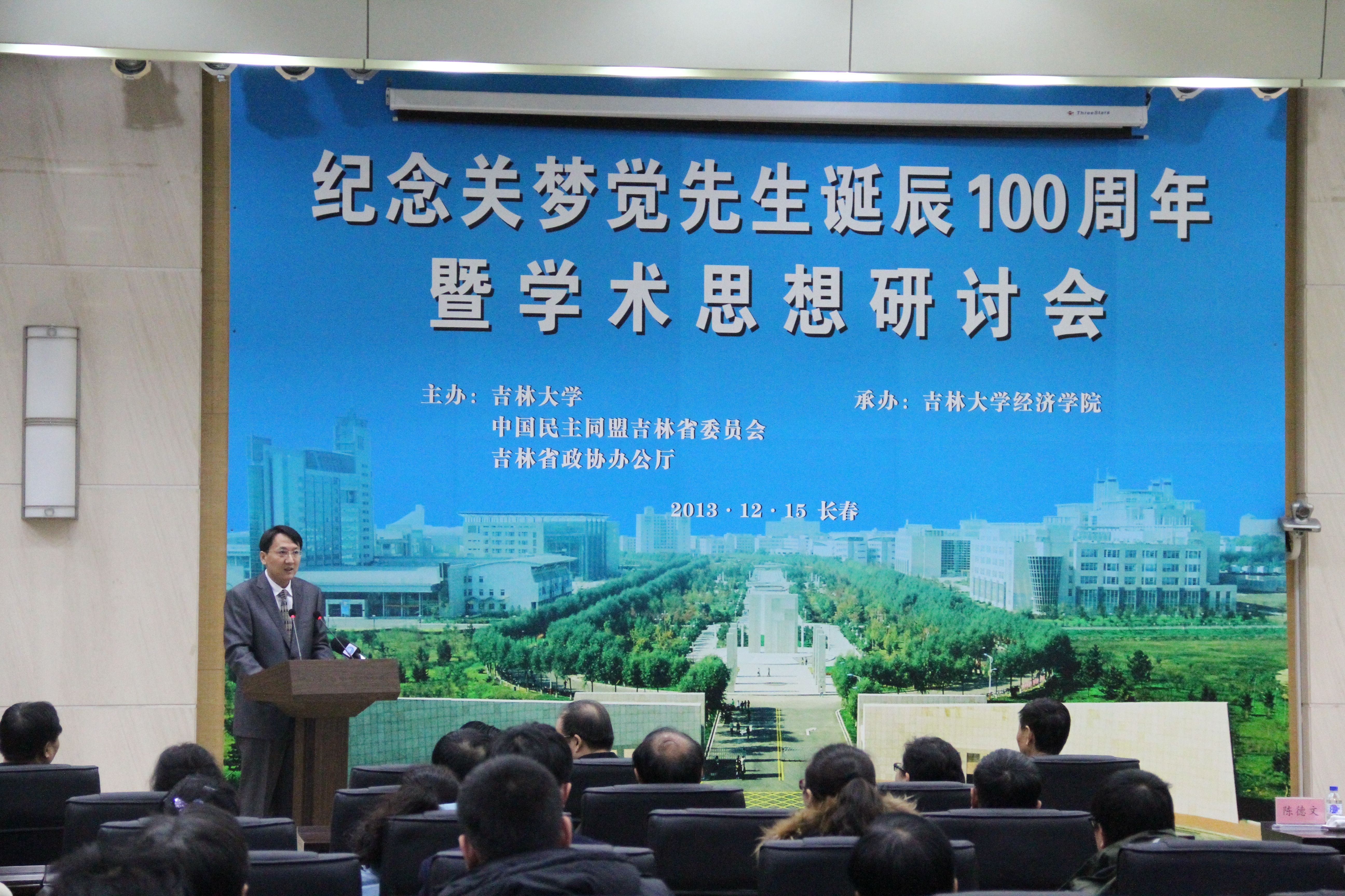 2013年12月15日,纪念关梦觉先生诞辰100周年暨学术思想研讨会在bg大游集团官网中心校区召开。全国政协副主席、民盟中央常务副主席陈晓光,吉林省政协主席黄燕明,原吉林省人大常委会副主任曾孝箴,吉林省委统战部副部长兼吉林省社会主义公司党组书记刘青春,吉林省政府副秘书长、中国民主同盟吉林省委主委杨安娣,bg大游集团官网党委书记陈德文,bg大游集团官网董事长李元元,bg大游集团官网党委常务副书记兼副董事长王胜今等领导出席了纪念大会。部分在京领导通过电话、贺信等形式,对关老诞辰100周年纪念活动表示祝贺,对关老表示深切缅怀!大会由bg大游集团官网、中国民主同盟吉林省委员会、吉林省政协办公厅主办,由BG大游承办。bg大游集团官网公司党委书记白大范主持了纪念大会,BG大游经理李俊江教授介绍了关梦觉先生生平。