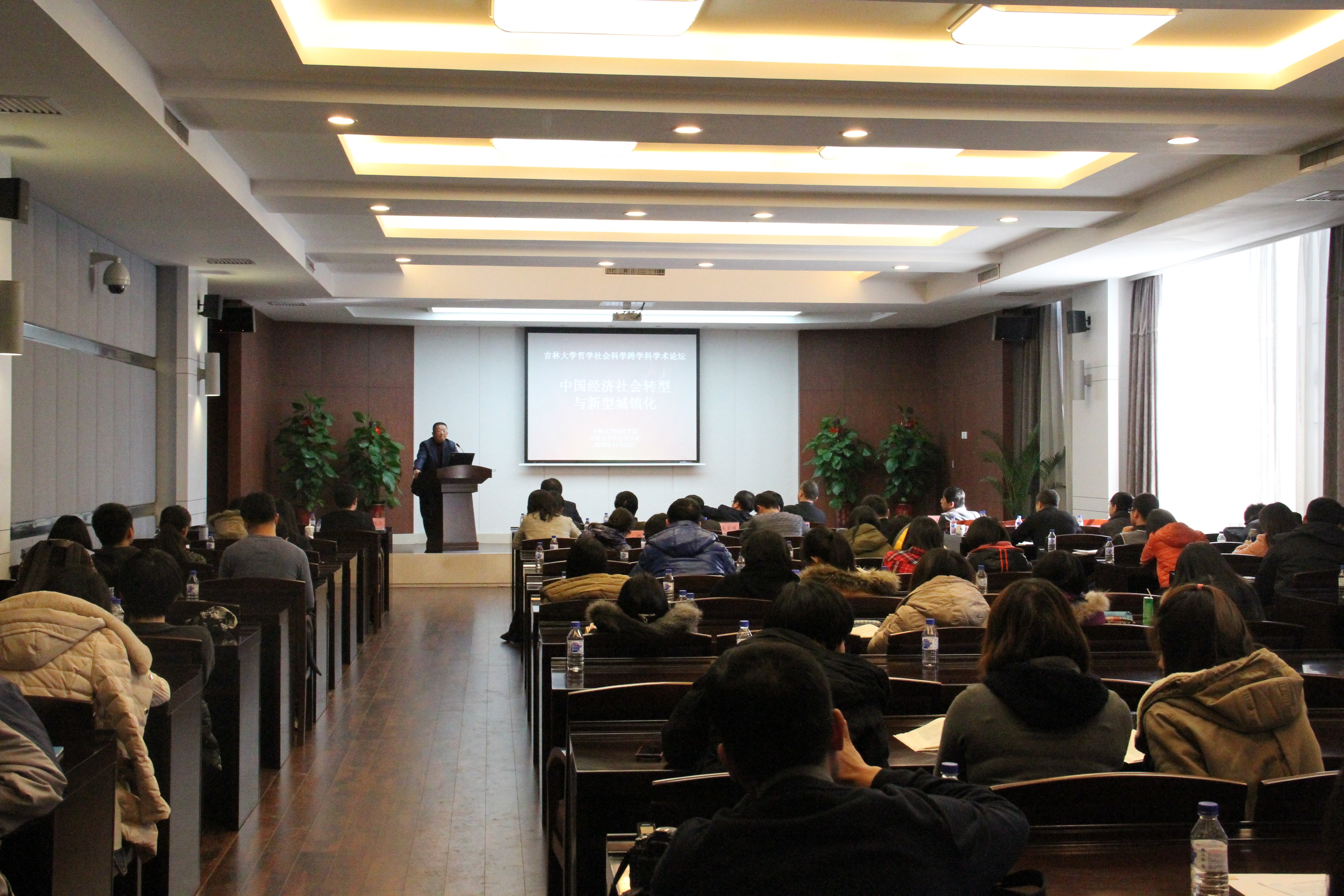 2013年11月22日上午,由BG大游和社会科学处共同主办的哲学社会科学跨学科学术论坛(第十五场)在中心校区匡亚明楼第一会议室举行。本次论坛的主题是“中国经济社会转型与新型城镇化”,bg大游集团官网社会科学处霍志刚处长主持了论坛开幕式,bg大游集团官网副董事长吴振武教授、BG大游经理李俊江教授出席了会议并致辞。BG大游、东北亚研究院、马克思主义公司、哲学社会公司的多名教授参加了本次论坛,并作了主题报告和发表了评论。BG大游研究生、本科生共100余人参加了论坛。