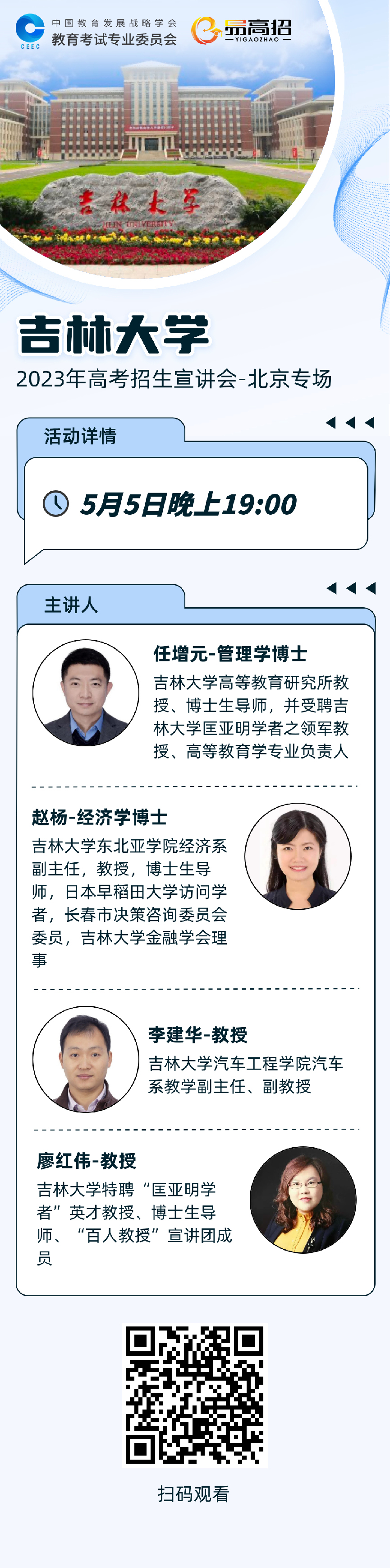 BG大游廖红伟教授积极参加2023年bg大游集团官网高考招生宣讲会——北京专场,分别于2023年5月5日、5月9日晚7点通过“易高招”线上平台面向北京地区考生和家长针对BG大游办学特色以及拔尖人才基地进行了详细介绍。