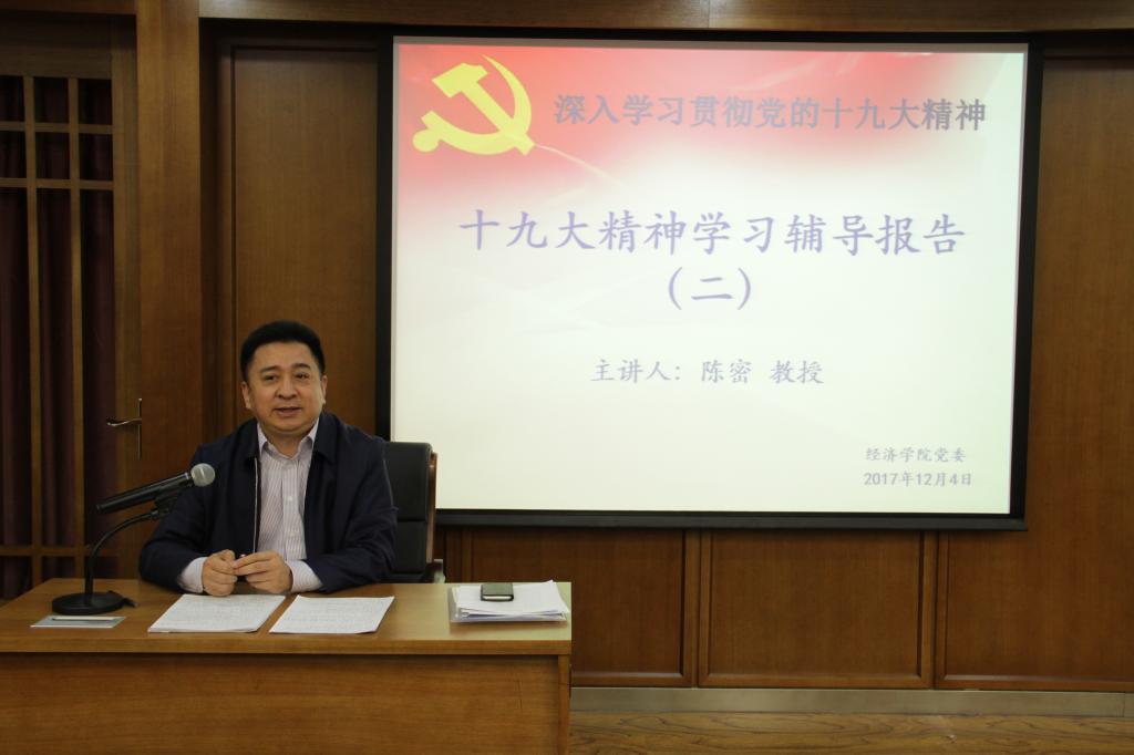 党课上,陈密书记系统梳理了马克思主义中国化经历的发展历程,从如何理解习近平新时代中国特色社会主义思想是马克思主义中国化的最新成果、如何认识中国特色社会主义进入新时代、如何践行新时期为实现中华民族伟大复兴不懈努力奋斗的新使命和新担当等方面对十九大精神进行了详细深入的解读。陈密书记强调学习贯彻好党的十九大精神,关键是以习近平新时代中国特色社会主义思想为行动指南,深入贯彻创新、协调、绿色、开放、共享的新发展理念,统筹推进经济、政治、文化、社会、生态各方面协调发展。广大青年同学要深刻领会党的十九大精神实质、牢记使命、勇做“有理想、有本领、有担当”的时代弄潮儿,在实现中国梦的伟大实践中拼搏努力、成长成材。