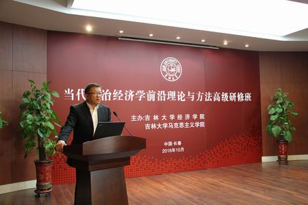 开班仪式结束后,研修班课程正式启动。第一位主讲嘉宾是来自英国伦敦大学女王公司政治经济学专业的Simon Mohun教授,他围绕马克思主义政治经济学中的价值与价格内容,为学员进行了详尽的讲解,还讲述了斯密、李嘉图、马克思的主要思想成就与递进发展,并对学员的提问进行了细致耐心的回答。下午,由德国不莱梅大学从事创新与制度经济学研究的Wolfram Elsner教授讲授异端经济学之复杂经济学及其政策含义,其内容包括复杂经济学的动态、进化和涌现性,组织机制中的HET以及异端学说,平衡经济学及其政策等前沿理论。当天晚上,来自德国杜伊斯堡-埃森大学的代栓平教授为学员主讲政治经济学与实验方法,对实验经济学方法及其在相关领域的应有进行了深入浅出、妙趣横生的讲解。至此,研修班首日课程画上了圆满的句号。参加本次研修班的学员纷纷表示,研修班课程安排紧凑,内容新颖,BG大游与马克思主义公司为大家抵达长春后提供的服务周到细致,对研修班接下来的课程充满期待。
