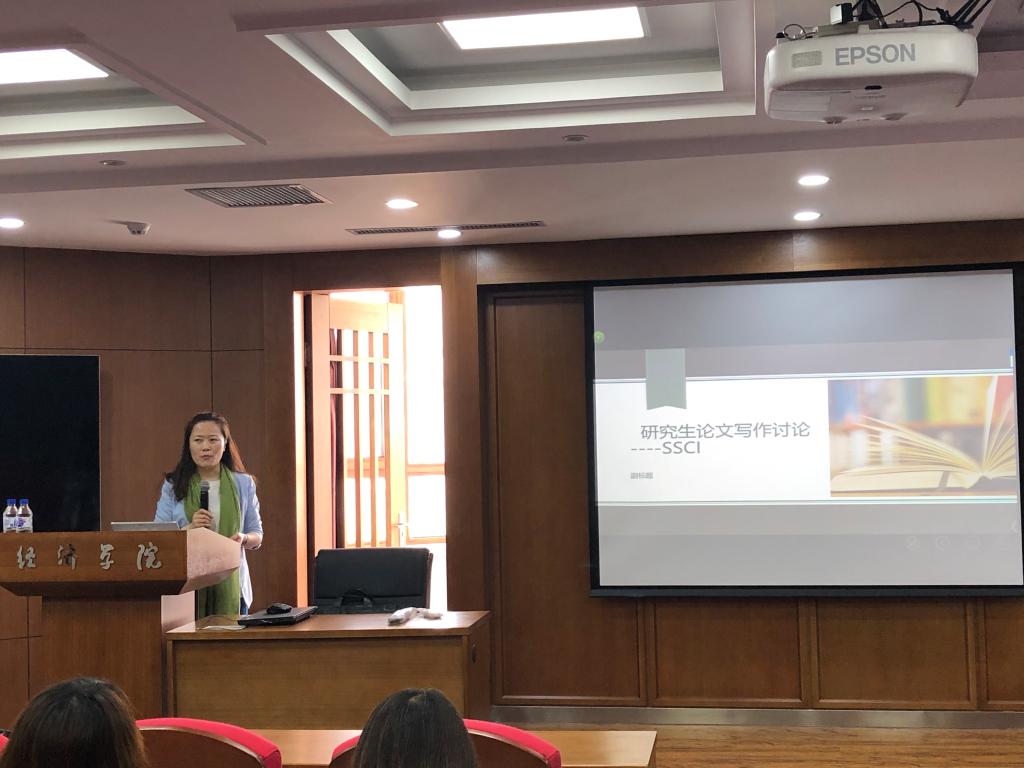 花秋玲老师就研究生阶段学术论文的写作方法与规范展开了全面的讲解与经验分享。花秋玲老师从她出国学术交流期间的SSCI论文写作经历讲起,分享了她的创作经验,极大鼓舞了同学们对于学术论文写作的热情。接下来,花秋玲老师细致讲解了论文写作的前期准备事项、写作流程、选题与论文结构等问题,并以自己在SSCI上投稿与发表的过程为例,强调了动力、方法、激情与创新在学术论文写作中的重要性,尤其强调创新的重要意义。