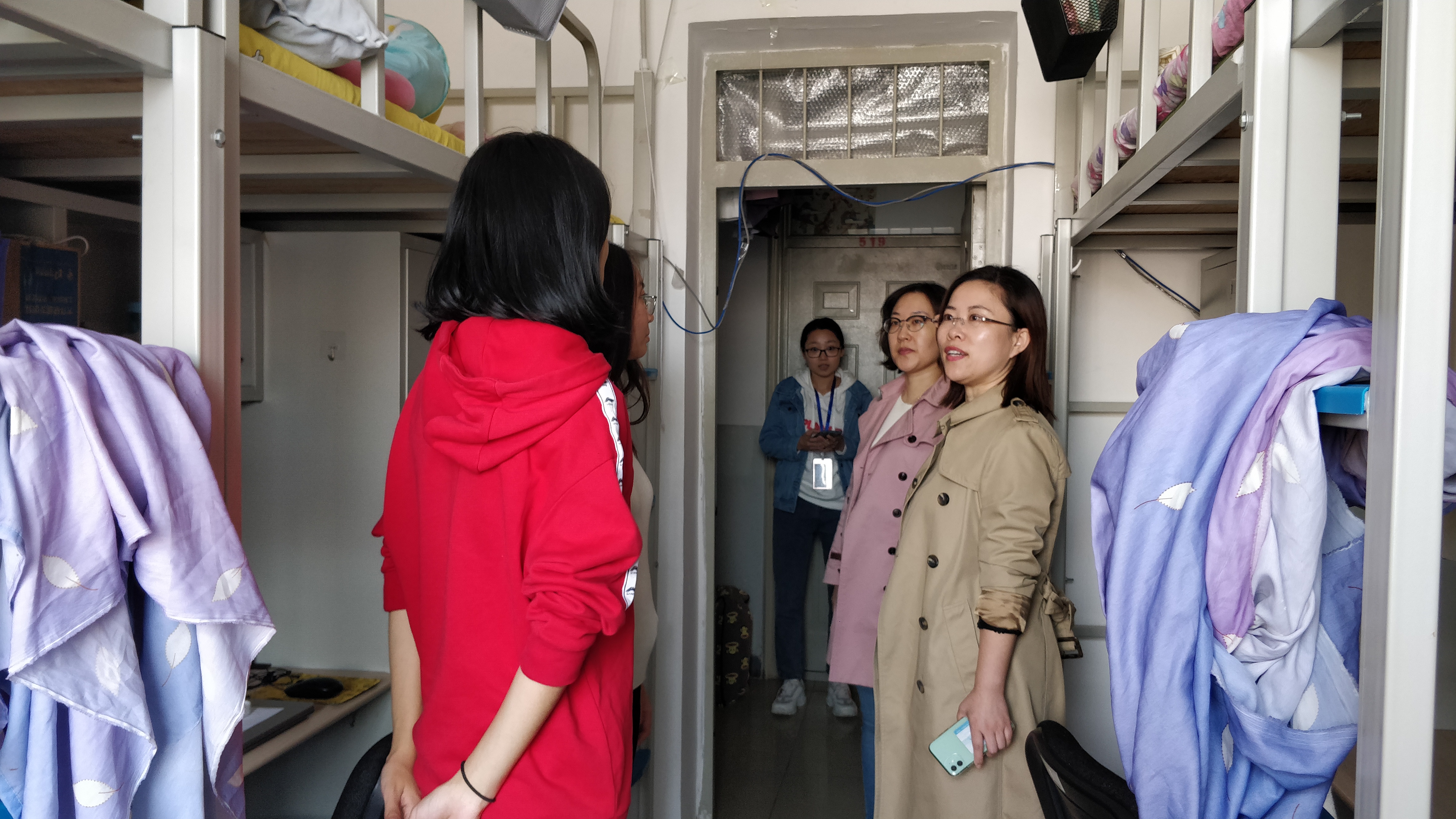 走访过程中,公司老师对违章电器进行排查,并借此机会与在寝同学进行了亲切交流,了解了新生同学报道后心理及思想的动态,并对同学们普遍关心的课程安排、疫情防控等问题一一做出解答。此外,对同学所提出的生活问题及需求,老师们表示会尽力帮同学们协调解决,满足合理需求。