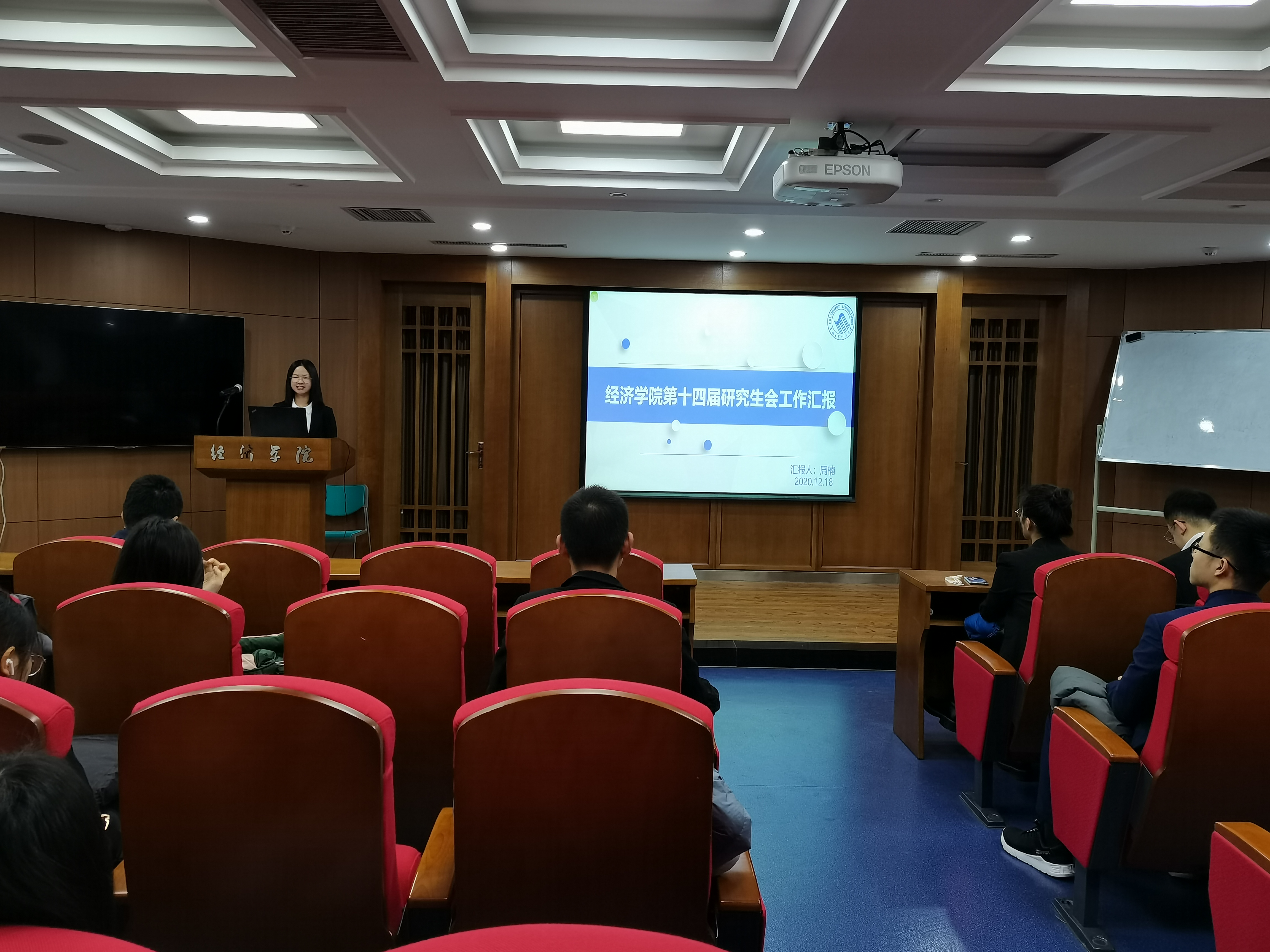 首先,由第十四届研究生会秘书长周楠代表第十四届研究生会作工作总结。周楠从“大事记”和“小”事录两个方面出发,对第十四届研究生会在学术、体育、心理、文艺、就业指导等方面所做的工作进行了全面总结。她还向与会人员分享了第十四届研究生会成员的工作感悟,欢迎第十五届研究生会成员的到来,并鼓励大家要珍惜美好学习时光、做好长远人生规划。