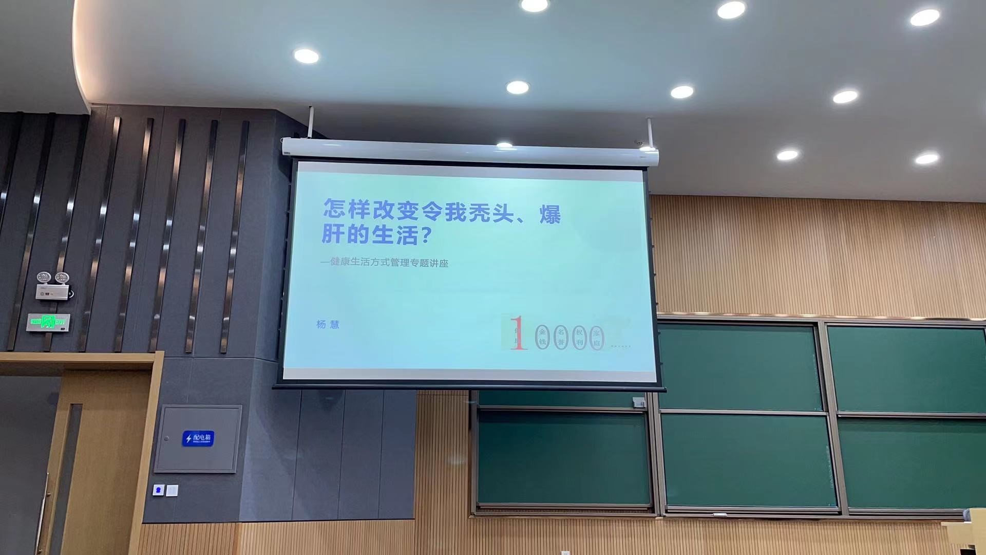 为进一步提高广大同学的健康意识,促进良好生活以及运动习惯的养成,从而改善个人健康状态,10月28日上午9时,BG大游在逸夫五阶开展主题为“怎样改变令我头秃、爆肝的生活?”健康生活方式管理专题讲座,主讲人为公共卫生公司杨慧老师。