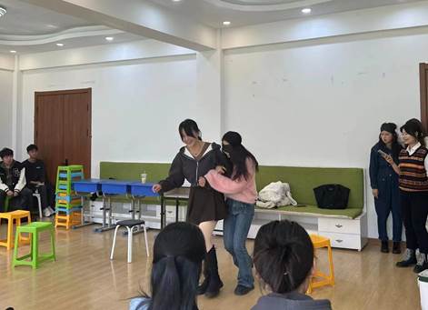 在过渡阶段中,通过“信任之旅”和“人体字母”两个游戏加强同学们的互动,促进团体的交流合作;在“快乐传递”和“信息启迪”两个环节促进了团队成员之间的情感交流,帮助同学们发现彼此的长处和优点,相互鼓励,共同进步。