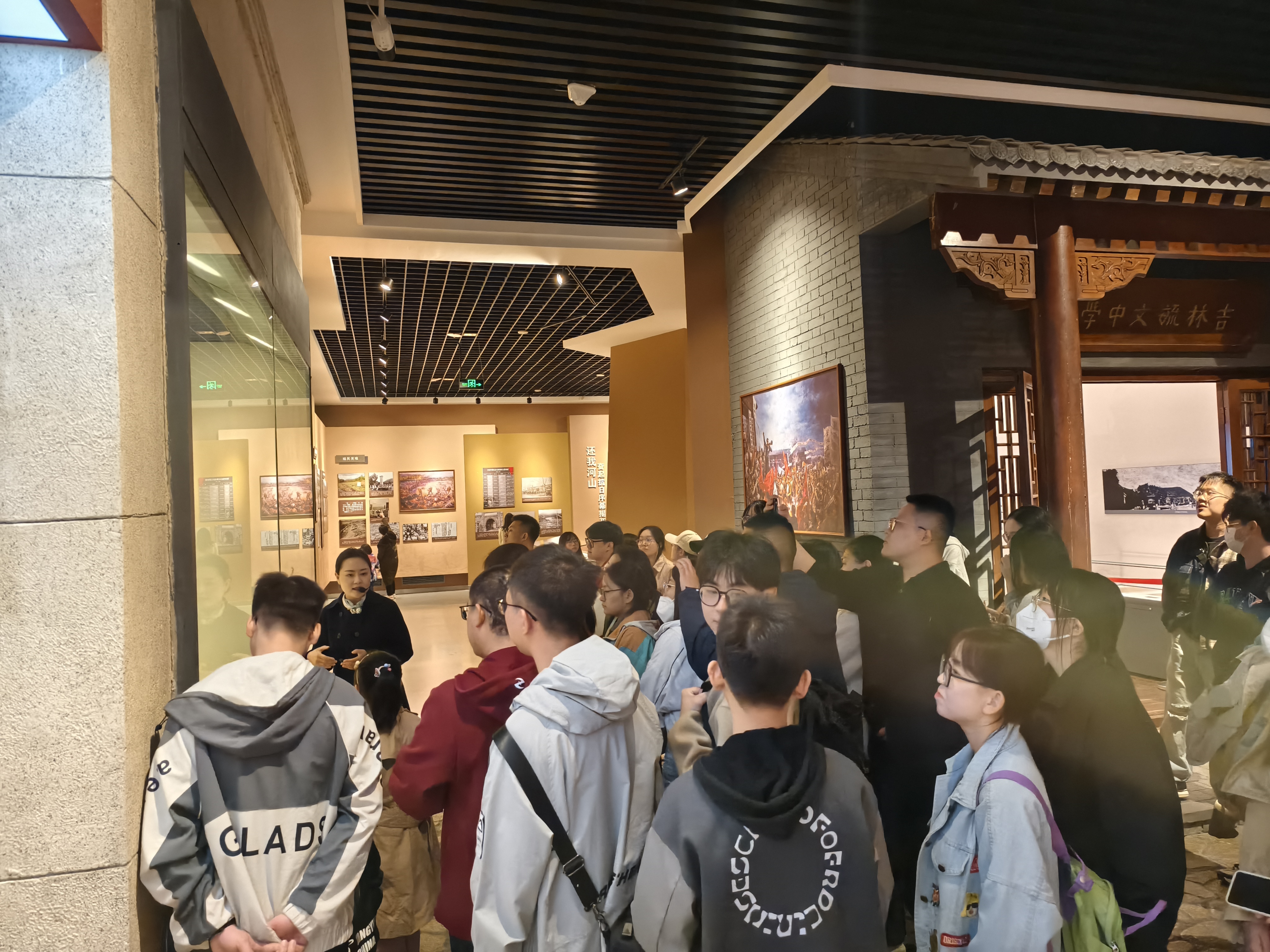 “破晓——吉林人民革命斗争史陈列”是吉林省博物院推出的第一个全面反映吉林人民革命斗争史的大型陈列,其用珍贵的文物收藏、丰富的历史照片、最新的科研成果,向支部成员展示了反帝反封的风起云涌,喋血抗日的艰苦卓绝,人民解放的波澜壮阔。陈列共分为三部分,第一部分为逐渐觉醒的吉林儿女为挽救民族危机,投入到反帝反封建革命斗争中,体现了吉林人民实现民族复兴的志向和信心;第二部分雪耻主题,展示了在党的领导下,东北抗日联军第一路军纵横白山松水,钳制、削弱、消灭敌人,挑战人类生存极限,坚持抗战,用鲜血和生命谱写恢宏的爱国主义壮歌。第三部分解放部分,展示抗日战争胜利后,吉林军民在中国共产党的领导下,反对独裁统治,努力开辟解放区,积极开展建党建政工作,安定社会秩序,实行土地改革,使广大翻身农民以高度的革命热情支援前线的光荣事迹。