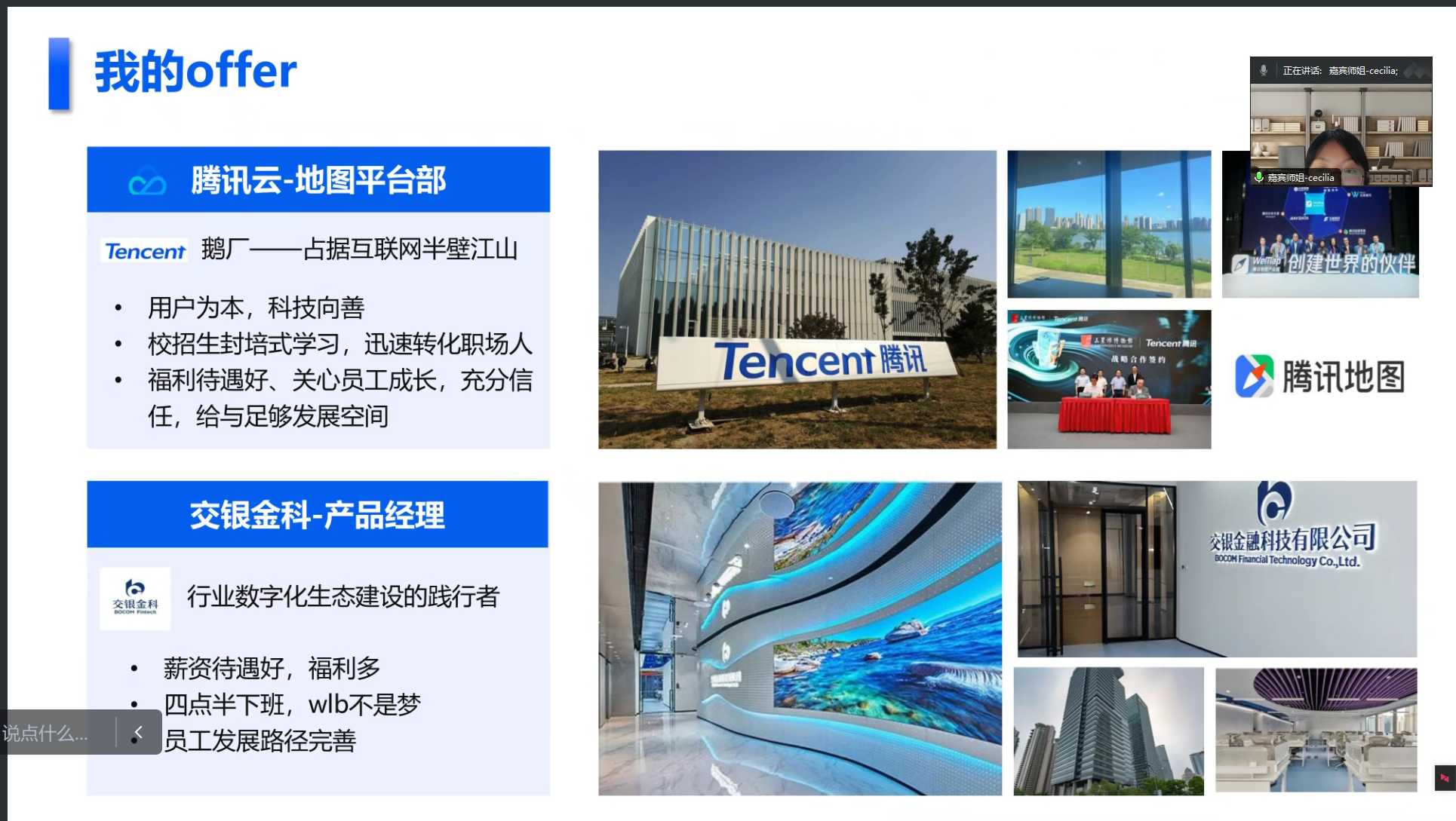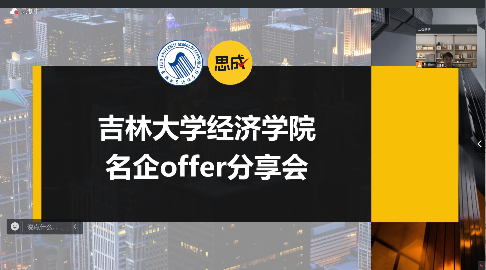 5月10日晚,BG大游研究生会成功举办了一场为吉大经济金融学子设计的多元就业方向求职经验分享会。本次活动有幸邀请到两位嘉宾,分别是斩获腾讯、字节跳动、国金证券、交银金科等多个实习及校招Offer的优秀学姐Cecilia以及思成求职创始人兼CEO孔翔老师,旨在帮助研究生们更好地规划职业生涯,明确求职方向。