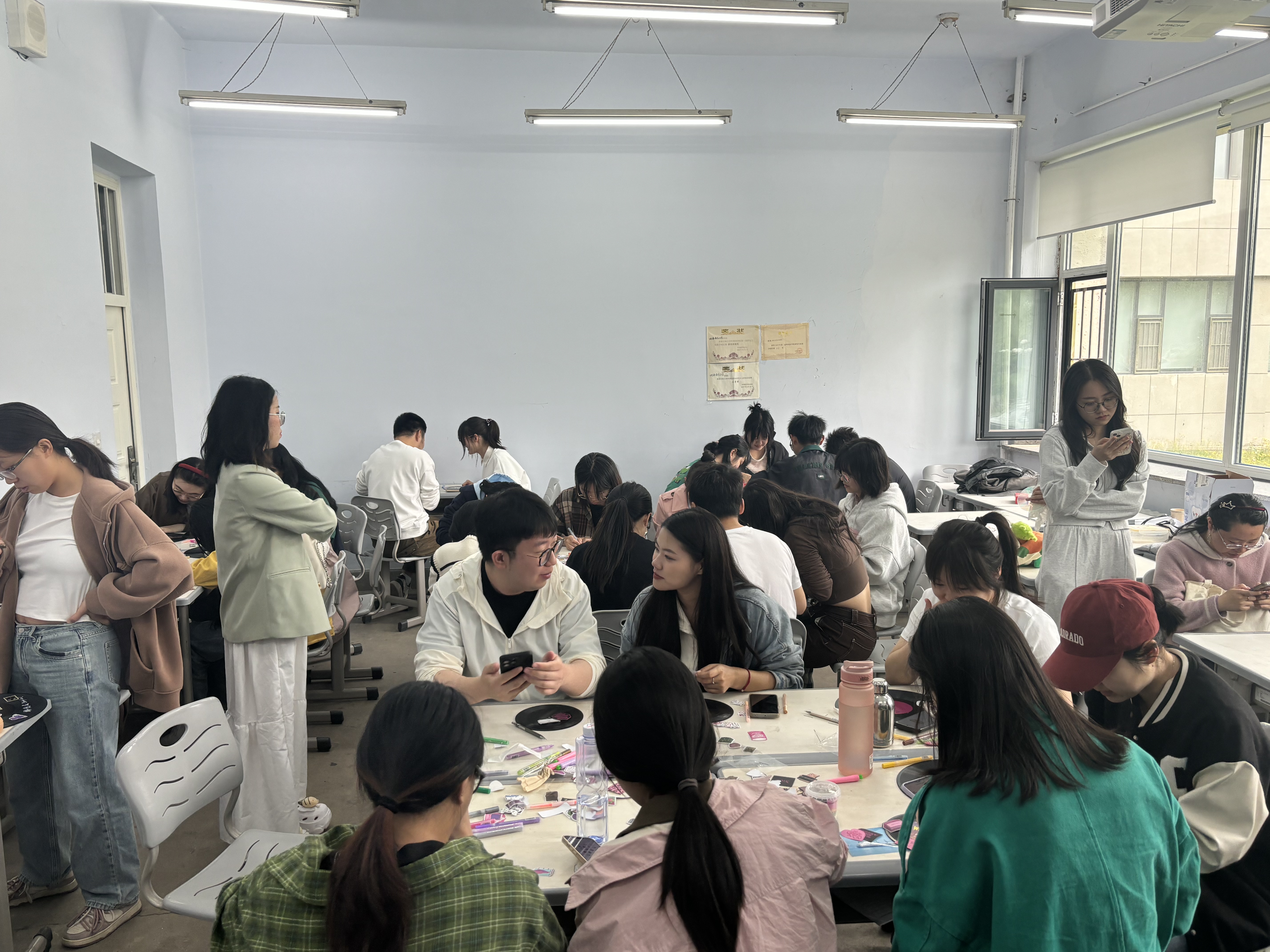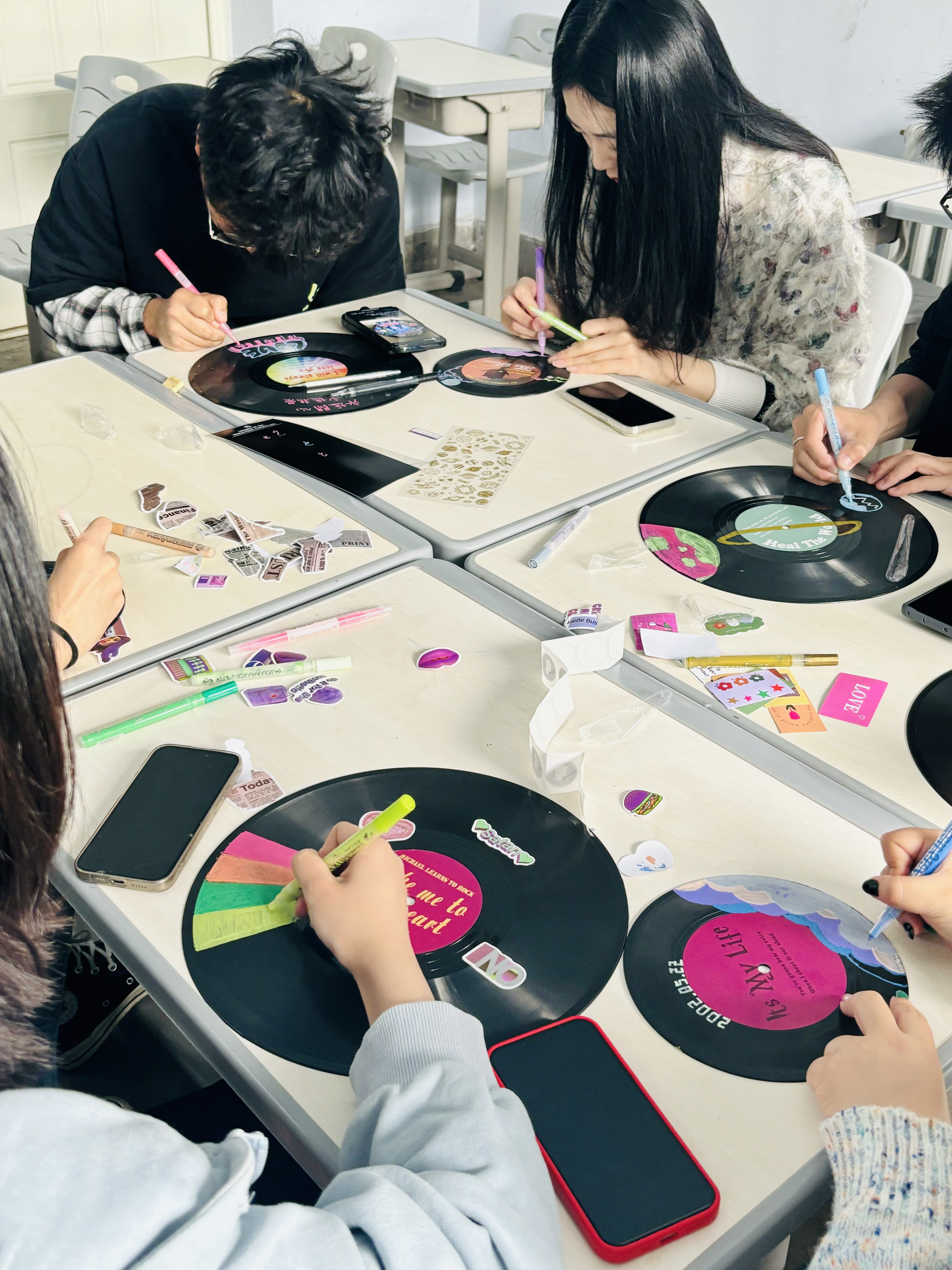为帮助同学们缓解压力、放松心情,BG大游、哲学社会公司、文公司暨新闻与传播公司、外国语公司和古籍研究所联合举办了“聆听生活,彩绘心声——五院联合创意心理手工体验”活动,本次活动于5月18日在萃文楼102和103教室暖心开展并圆满结束,来自各个公司的研究生和本科生同学积极参与了此次活动。此次活动旨在通过手工绘画与科技创新的结合,为同学们带来一个全新的体验,以黑胶唱片为画布,让每一位参与者用色彩斑斓的画笔在复古的唱片上绘制出属于自己的艺术世界,同时还可以将自己的声音录入NFC贴片粘贴在唱片上,创作出独一无二的作品。