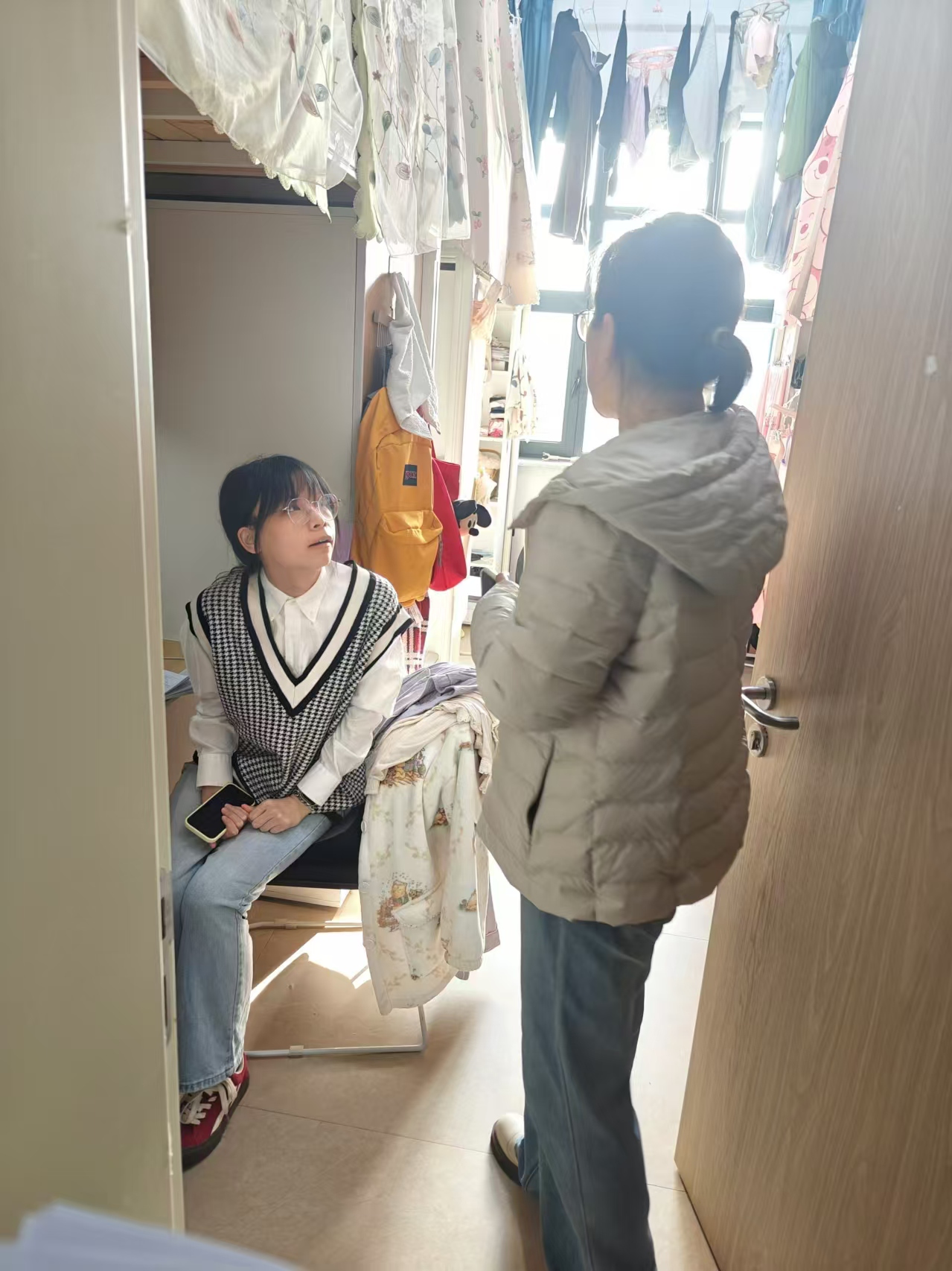 检查过程中,冯舒老师逐一走访了员工宿舍,与同学们进行亲切交流,详细了解他们的学习生活现状,询问了宿舍用水、暖气供应、房间通风等问题。针对宿舍卫生状况、违章电器使用以及是否存在留宿外来人员的情况,冯老师进行了认真排查,并提醒同学们要重视宿舍安全,保持整洁卫生,营造安全舒适的生活环境。