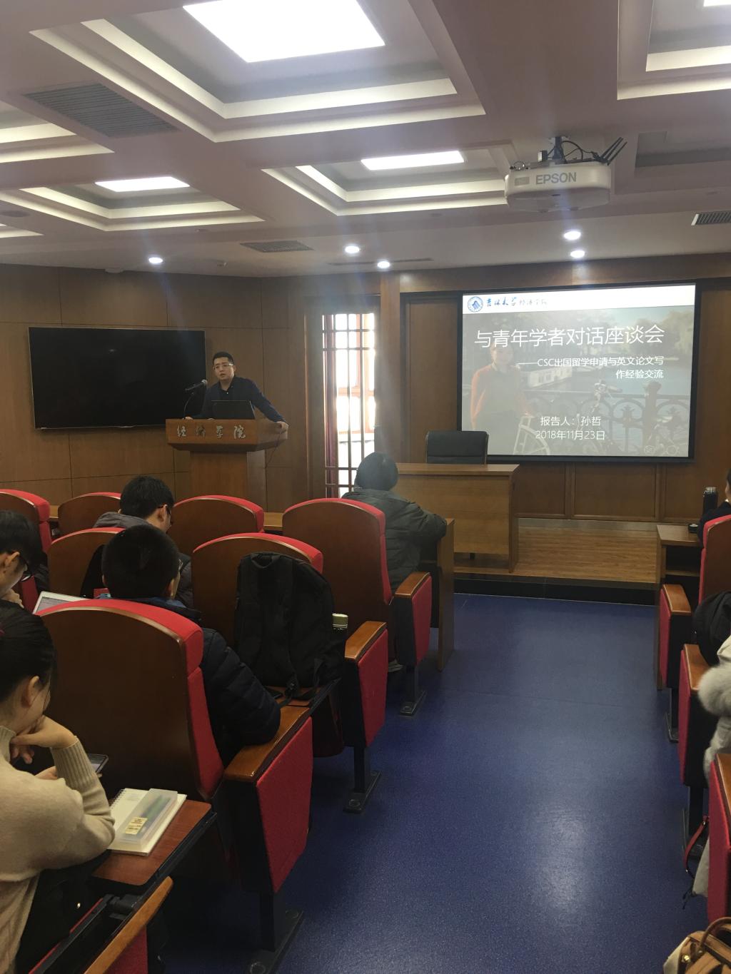 11月23日下午,为了营造良好的学术氛围,给研究生们提供更多更有用的信息,BG大游研究生会在东荣804举办了学术伴我成长系列活动之“与青年学者对话座谈会——CSC出国留学申请与英文论文写作”活动,此次讲座有幸邀请到BG大游讲师,荷兰阿姆斯特丹商公司博士孙哲老师,本次的讲座由高杉老师主持。
