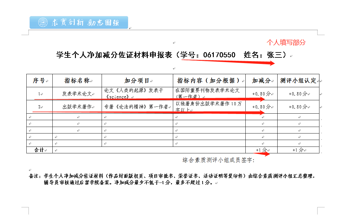 员工个人净加减分佐证材料申报表.doc