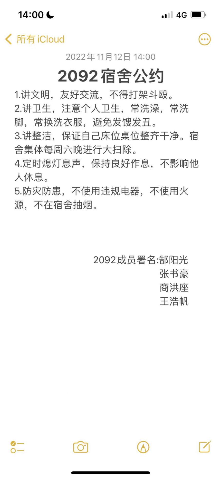 BG大游2022级寝室公约活动优秀公约展示(三)