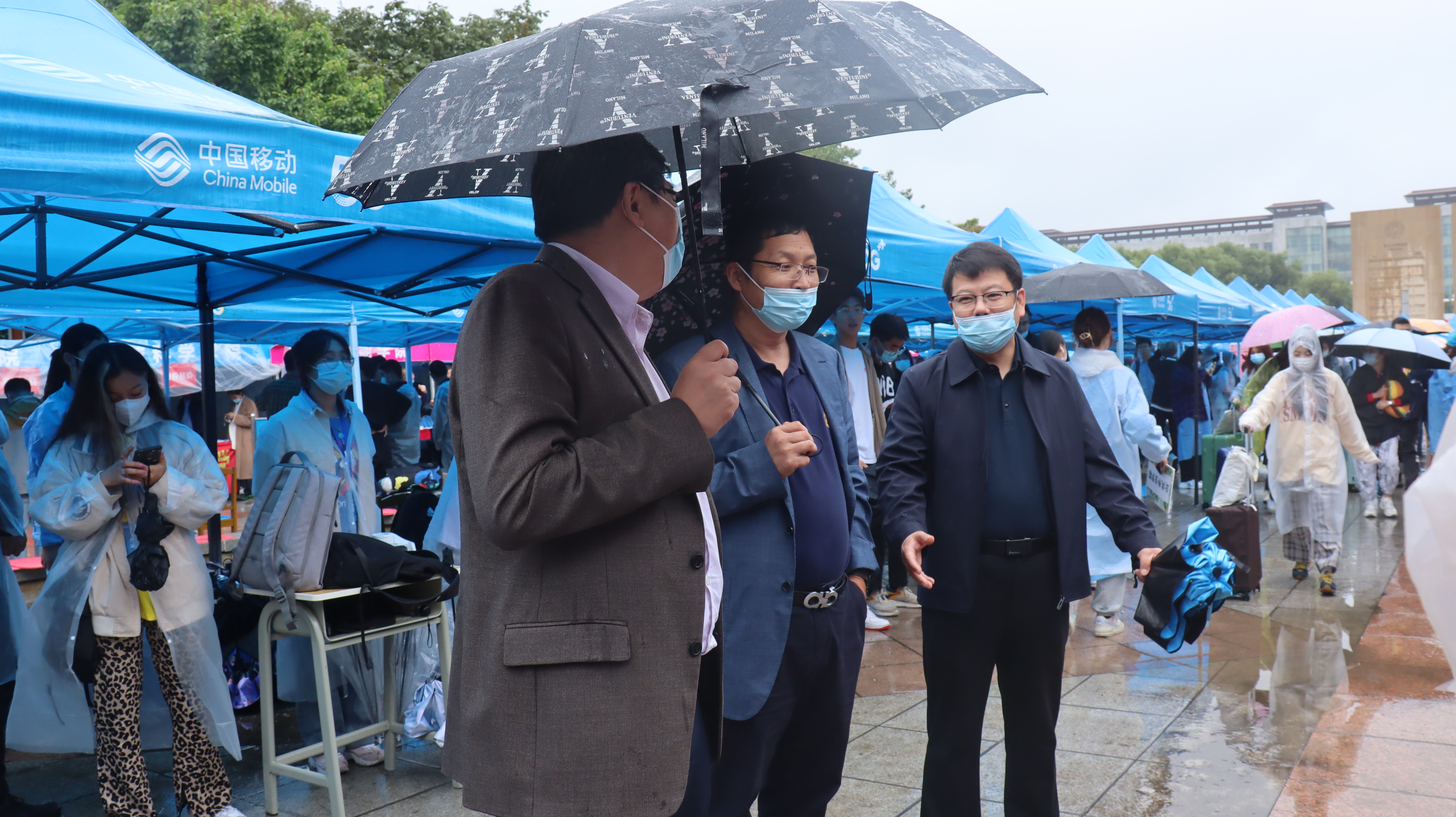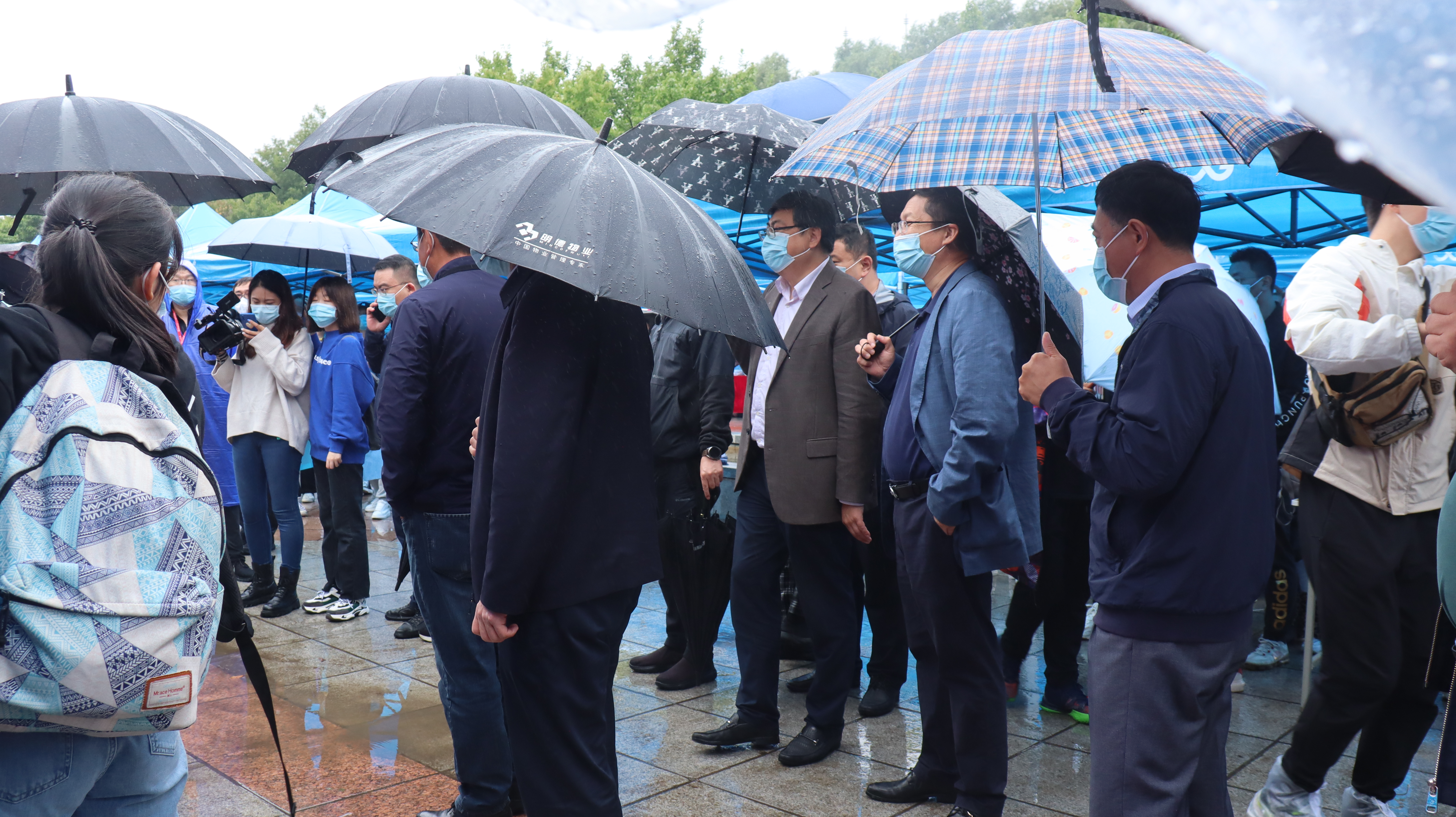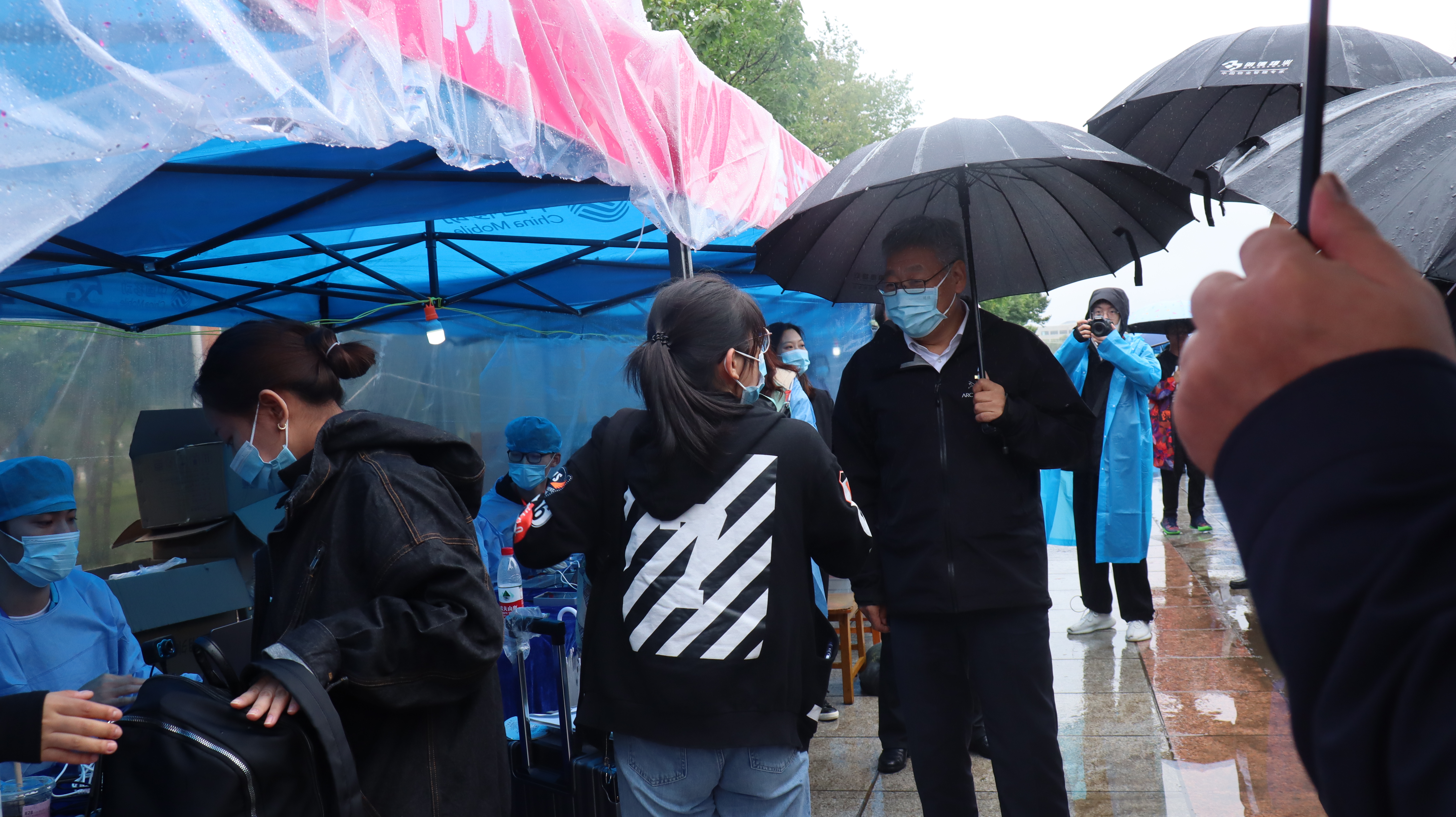 志愿者在辅导员老师的带领下,帮助新生顺利办理了报到手续。新生在志愿者的指引下陆续乘坐导站车离开报到现场,到达各自公寓。BG大游辅导员老师全程在现场进行相应的安排与指导,保证迎新工作的顺利、高效开展。下午三时许,公司党委书记聂宏凯、经理丁一兵、党委副书记赵勇来到五月花广场探望新生与工作人员,并给予新生入学相关的指引与帮助。随后,公司党委常务副书记冯正玉、副董事长王玉柱一行人来到BG大游迎新现场,对雨中参与迎新的全体师生表达了亲切的慰问。