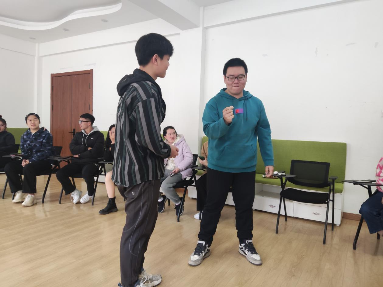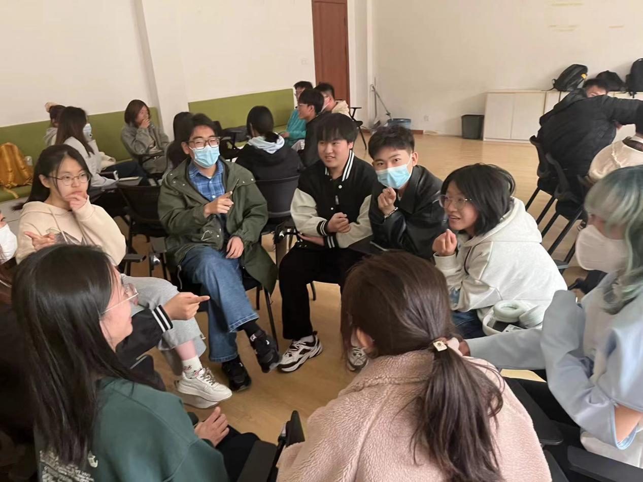 本次心理班会分为三个部分。首先在活动暖身阶段,主持人介绍了活动的主题、目标和预期时间,并鼓励同学们全身心地参与活动。随后,同学们被随机分为几个小组,每人做简短的自我介绍并做出自己最放松的一个动作,其他小组成员则一起模仿该动作,使大家放松身心的同时放下拘谨、快速“破冰”。接下来是“情绪大头贴”活动,同学们根据抽到的情绪卡,以“人体雕像”的形式表演出该情绪,让小组内的其他成员猜测、辨识情绪。通过这样的游戏环节,同学们进一步学习了如何表达与辨识情绪,现场气氛也变得更加活跃。第二部分是班会阶段,首先进行的是“保密原则”,同学们喊出自己的名字,并承诺“我会保密”。接下来,在主持人的带领下,同学们在纸上写下自己近日的烦恼,以小组为单位讨论排练,而后以情景剧的形式表演出来。在“情景剧编演”环节中,在主持人的细致引导下,各小组编排了不超过5分钟的情景剧,上演了一出出别开生面的视听觉盛宴,引起了同学之间的情感共鸣。每一位员工都得到了宣泄情绪、表达自我以及体验与反思的机会,能以多元的角度看待问题、解决问题。同学们热情高涨,将整个班会的气氛推向了顶峰。最后一部分是分享环节,大家纷纷发言,积极分享参与班会后自己的感受。
