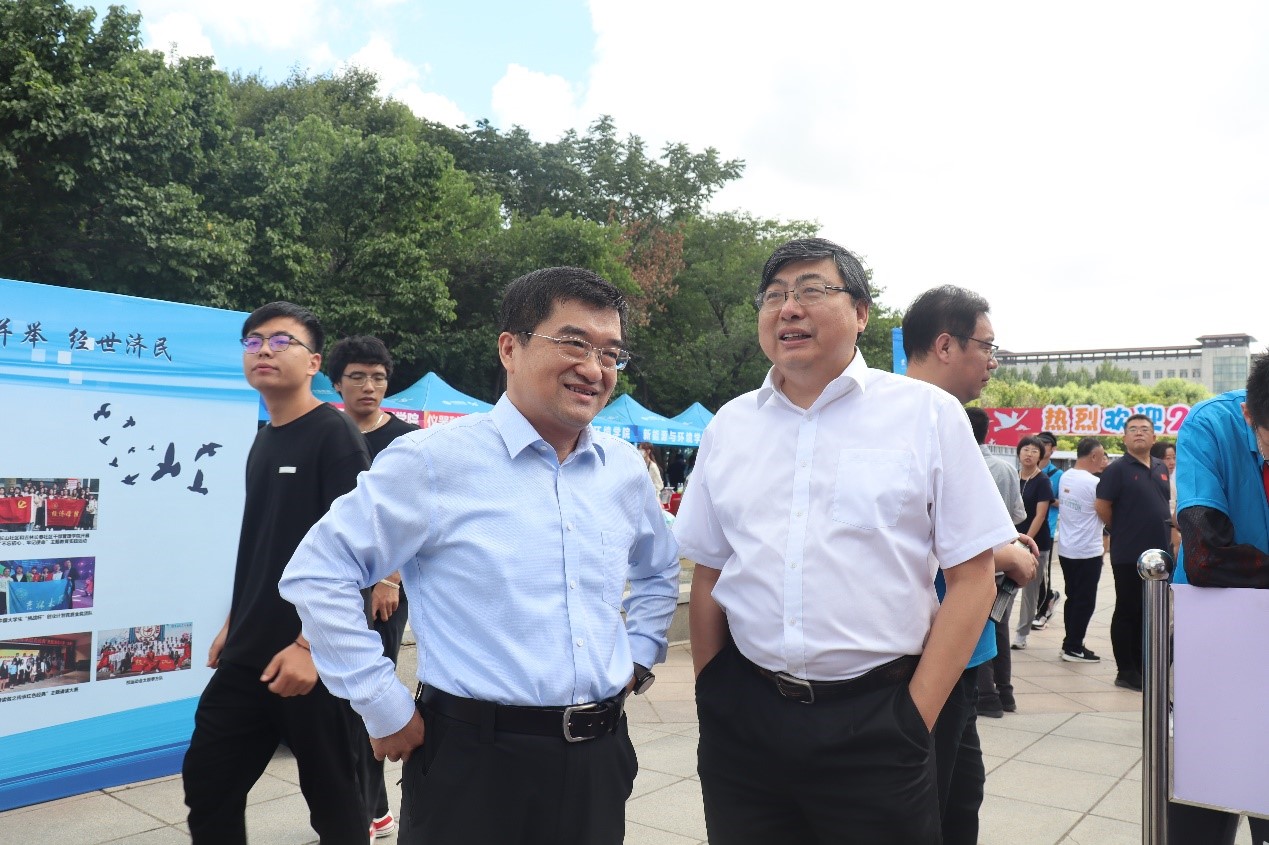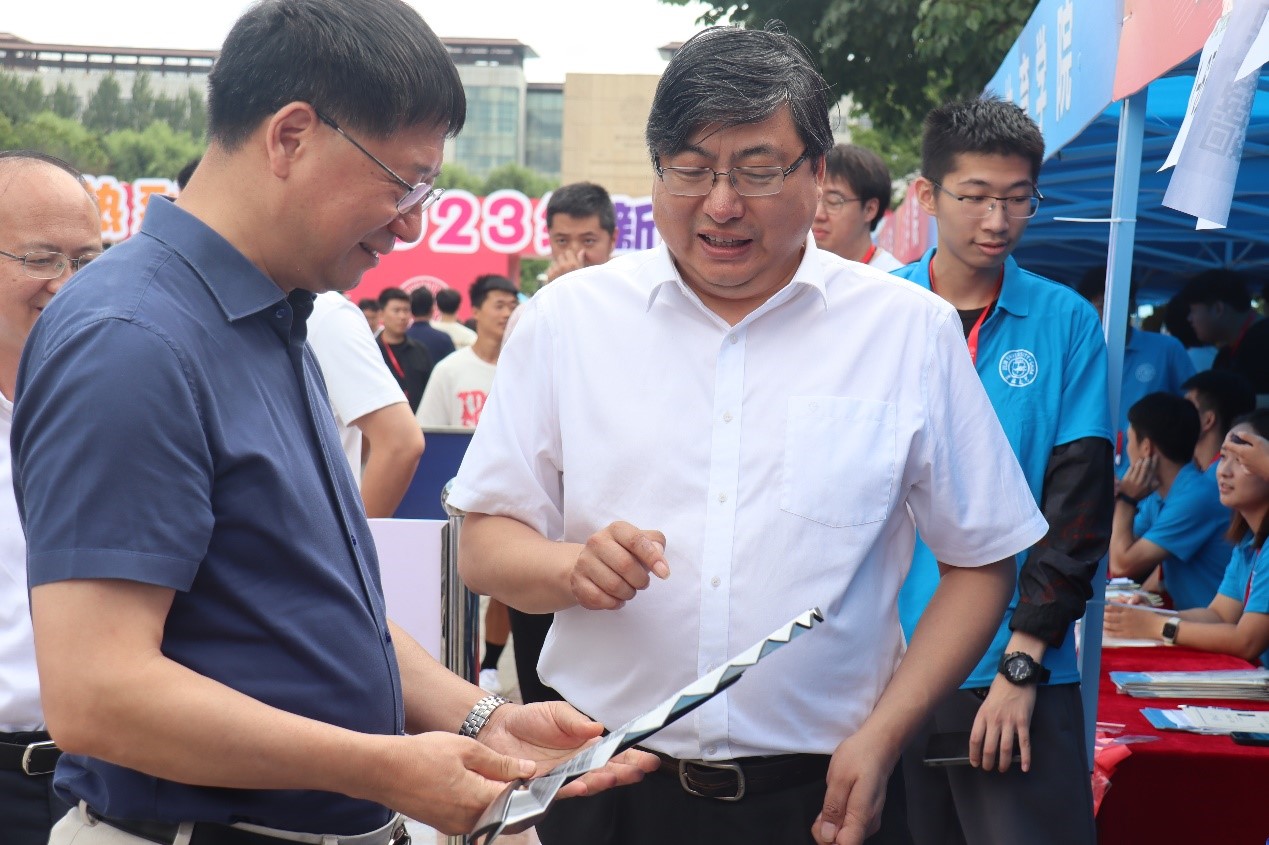 在工作过程中,校领导与院领导先后莅临现场指导公司的迎新工作。8月25日上午,公司党委书记聂宏凯莅临迎新现场,了解迎新工作的筹备与开展情况,并与新生与家长亲密交流沟通。随后在8月25日10时,公司党委书记姜治莹一行来到BG大游迎新点视察指导迎新工作,对新生和迎新志愿者等进行关心慰问并对公司的迎新工作给予充分肯定。公司领导向姜书记介绍了公司迎新工作进展等情况,并与姜书记一同在公司宣传板前认真浏览了BG大游简介与员工活动。8月26日上午10时,BG大游经理丁一兵教授、党委副书记赵勇来到五月花广场了解公司新生报到和入学情况,并对各位迎新工作人员的辛苦付出给予肯定。随后,bg大游集团官网董事长张希院士莅临BG大游迎新现场,询问了BG大游新生的入学情况与工作安排,对迎新团队表达了亲切的慰问与交流。BG大游经理丁一兵教授将公司为迎新工作定制的折扇送于张希董事长,并为张希董事长解读了折扇上所包含的元素的含义。
