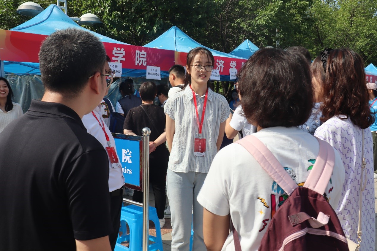 在迎新现场,新媒体中心成员对部分新生、新生家长、新生班代、志愿者以及2023级新生导员做了简单采访。其中,被采访的新生谈到了关于选择经院的原因以及对未来求员工活的憧憬,新生家长分享了初来吉大的感受以及对新生的期待,各班班代表达了看到新生喜悦而紧张的心情,志愿者则作为学长学姐,对新生提出了一些实用性的建议。最后,2023级导员邹雨彤老师在采访中表达对新同学的欢迎,并且表达了对新生的美好祝福。