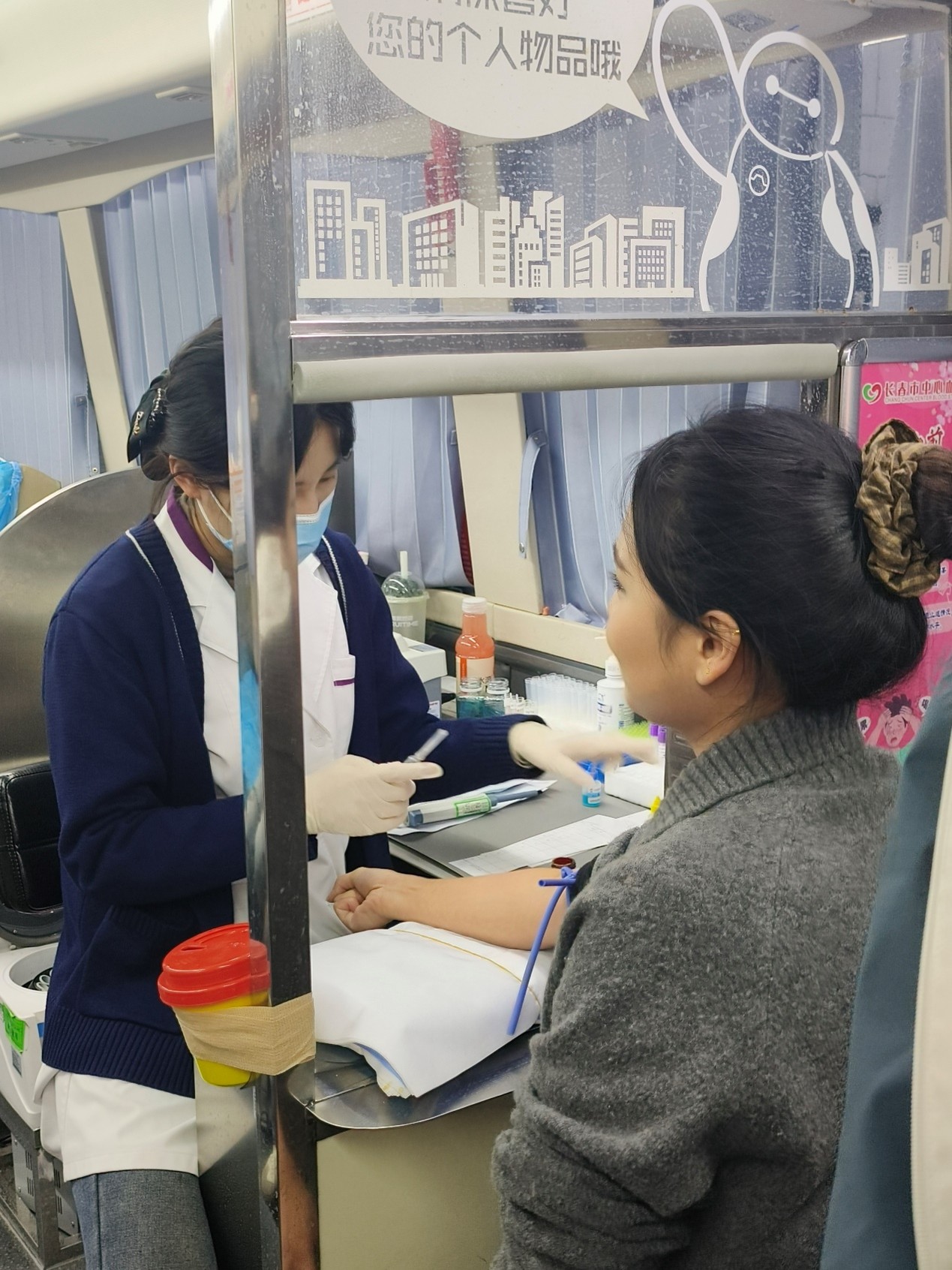 周三下午 1 点,金融系的同学们率先来到献血点,伸出手臂献出热血。在医护人员的引导下,他们依次完成填表登记、血压测量、血液检测等一系列流程,顺利完成献血。当天,参与献血的同学们相互鼓励,现场氛围温暖而热烈。在整个献血过程中,每位同学都展现出了极大的热情与责任感,他们深知,自己献出的每一滴血,都可能成为挽救他人生命的关键力量。
