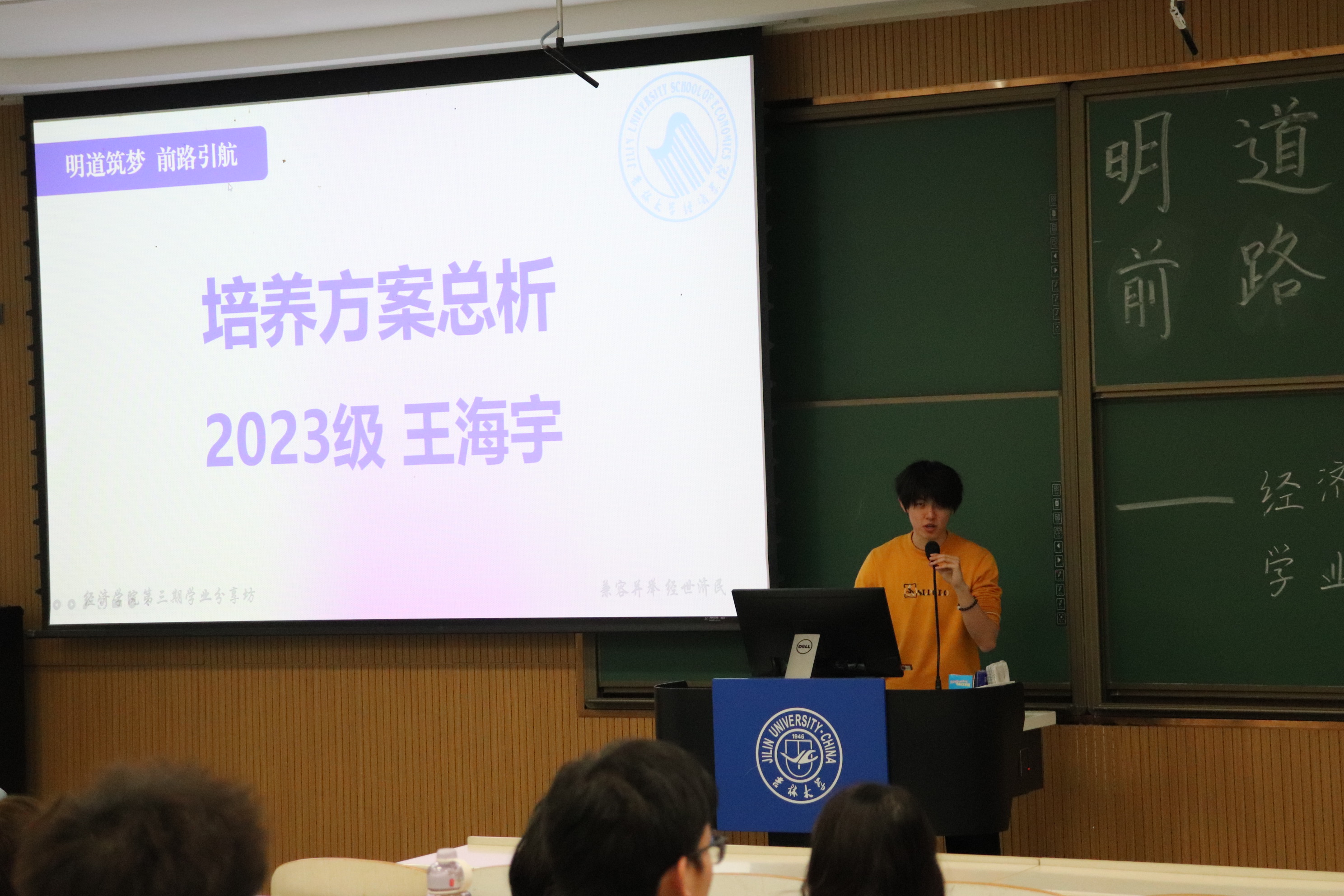 在培养方案解读环节,王海宇学长着重强调了通识教育在经济学专业中的核心地位。他指出,政治经济学、计量经济学等专业课程是筑牢专业根基的关键,而覆盖金融、国际贸易等方向的选修课则为同学们拓展知识边界提供了广阔空间。在专业分流方面,学长提醒同学们,分流起点与专业排名紧密相关,大一时保持高均分尤为重要。