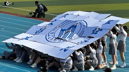 5月11日,晨光熹微时,BG大游太极拳代表队的60位同学衣袂飘飘,“翩若惊鸿、矫若游龙”,以排山倒海的气势登临校运会田径场。同学们在田径场中央演绎二十四式简化太极拳,衣袂翻飞处,既有"野马分鬃"的舒展,又含"如封似闭"的严谨。方阵的拳法似云卷云舒,又虚实相生;动作舒缓如风,招式绵长似气,体现天人合一的东方哲学。