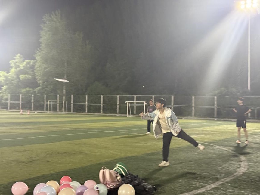 首轮“飞盘接力”即刻点燃了现场活力。同学们在绿茵场上灵活跑动,出盘时手腕要稳,盘向要准,还需要接盘人进行跑位来完成一次接发。有时候差之毫厘,大家纷纷大喊:可惜!有时一次非常完美的接盘也让同学们纷纷鼓掌!现场情绪自然流淌,压力悄然释放。这不仅锻炼了专注力与协调性,更在无形中拉近了彼此距离。