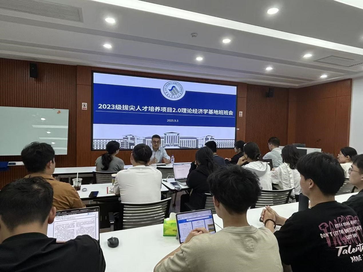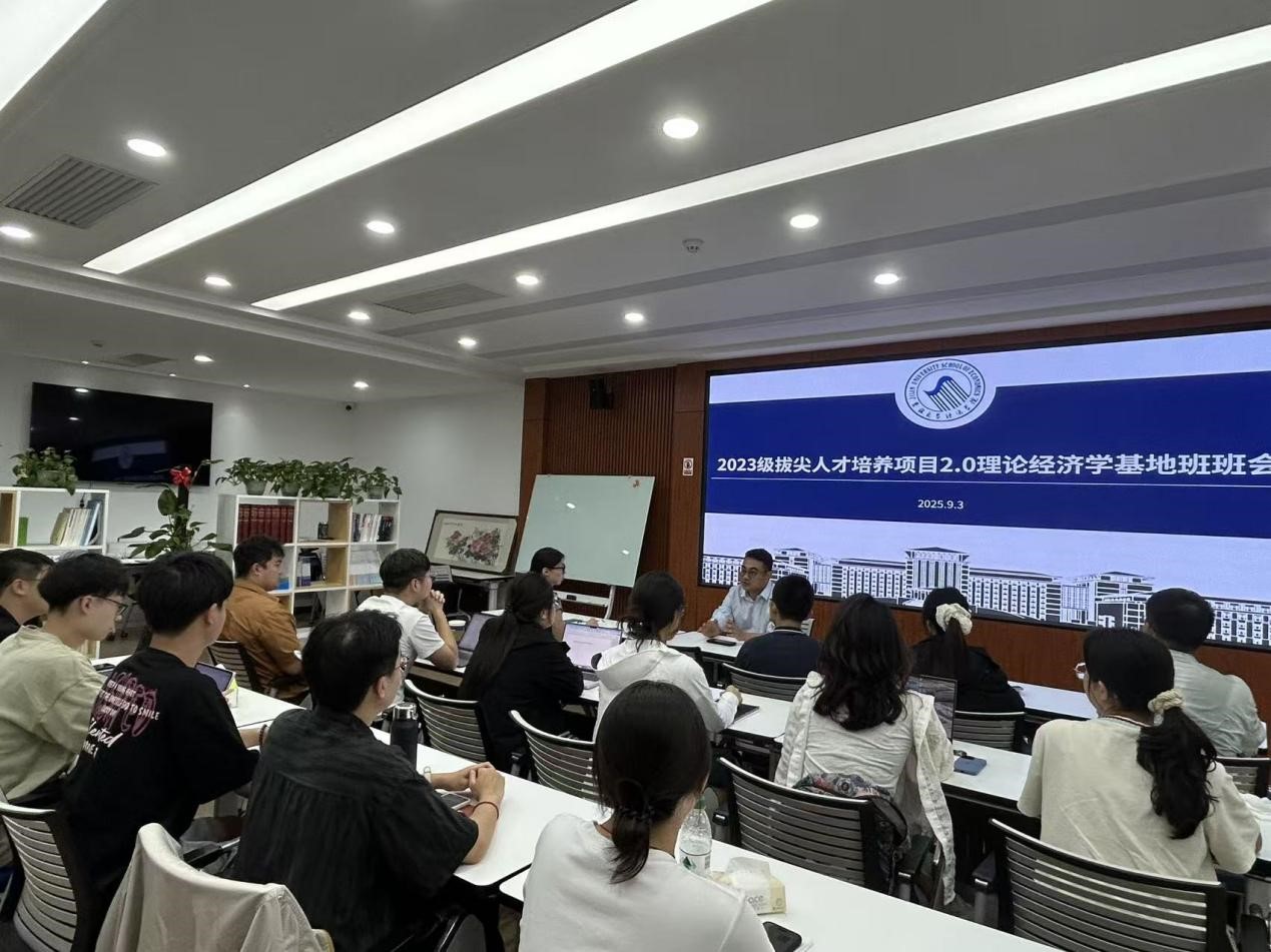2025年9月3日上午,2023级bg大游集团官网理论经济学基础学科拔尖人才培养计划2.0基地班(匡亚明班)于东荣大厦B211教室召开新学期主题班会。会议以人生规划为主题,围绕科研方向规划与未来发展路径展开讨论,班主任赵放主持会议。