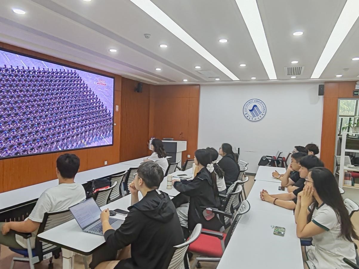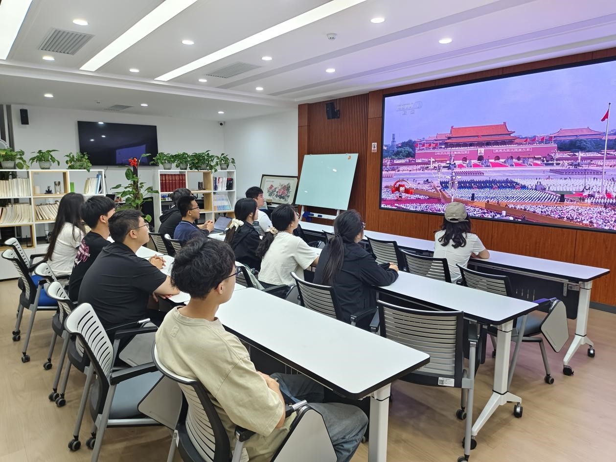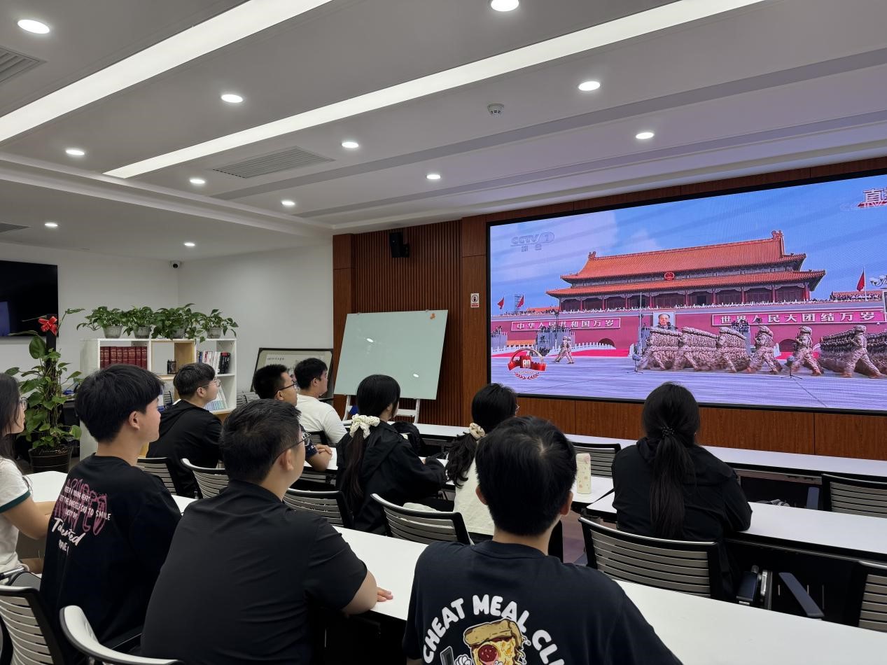 2025年9月3日,纪念中国人民抗日战争暨世界反法西斯战争胜利80周年大会及阅兵式在天安门广场隆重举行。BG大游2023级匡亚明班组织全班同学于东荣大厦B211观看直播,见证这场象征着和平与发展的国家盛典。