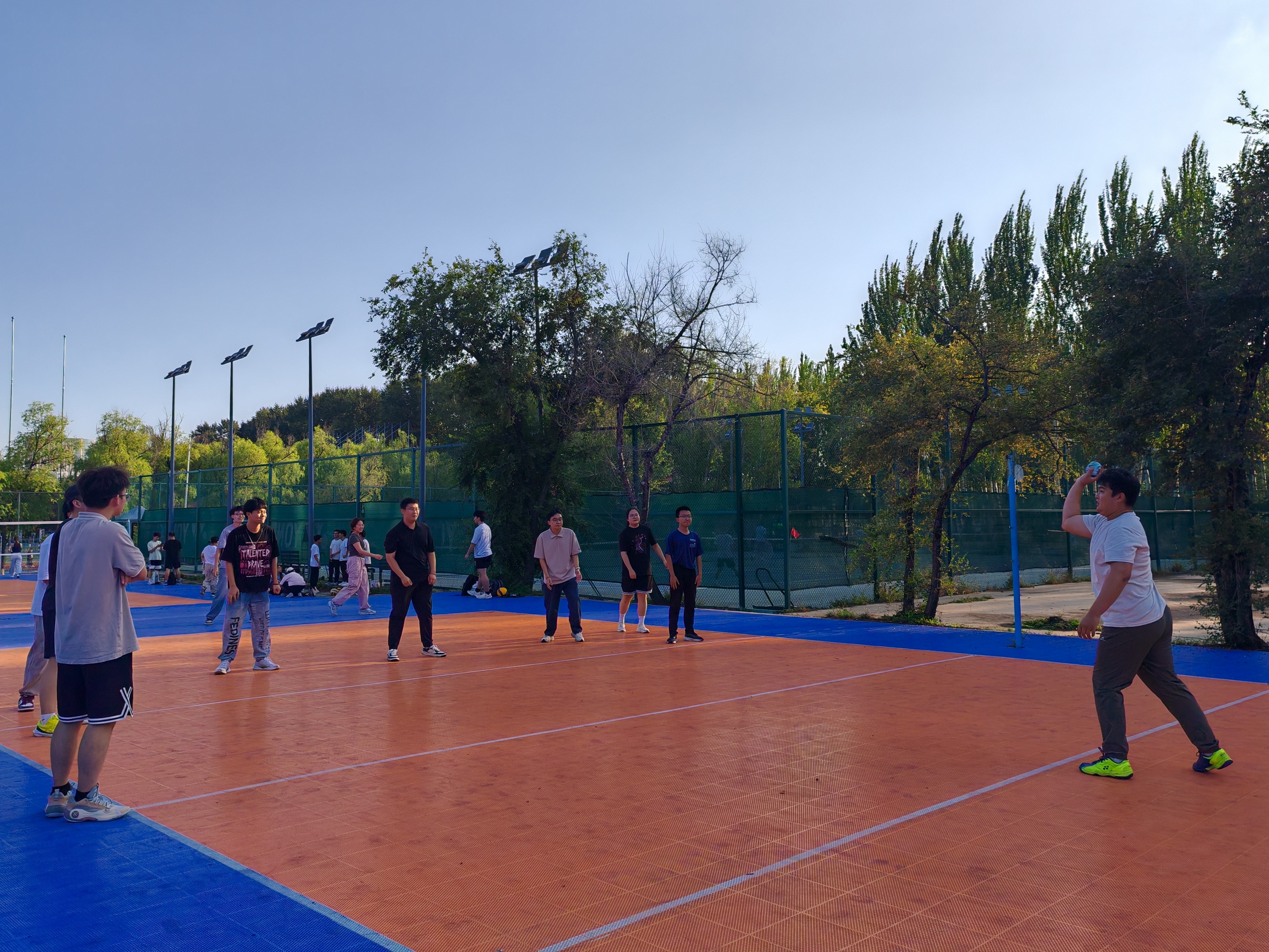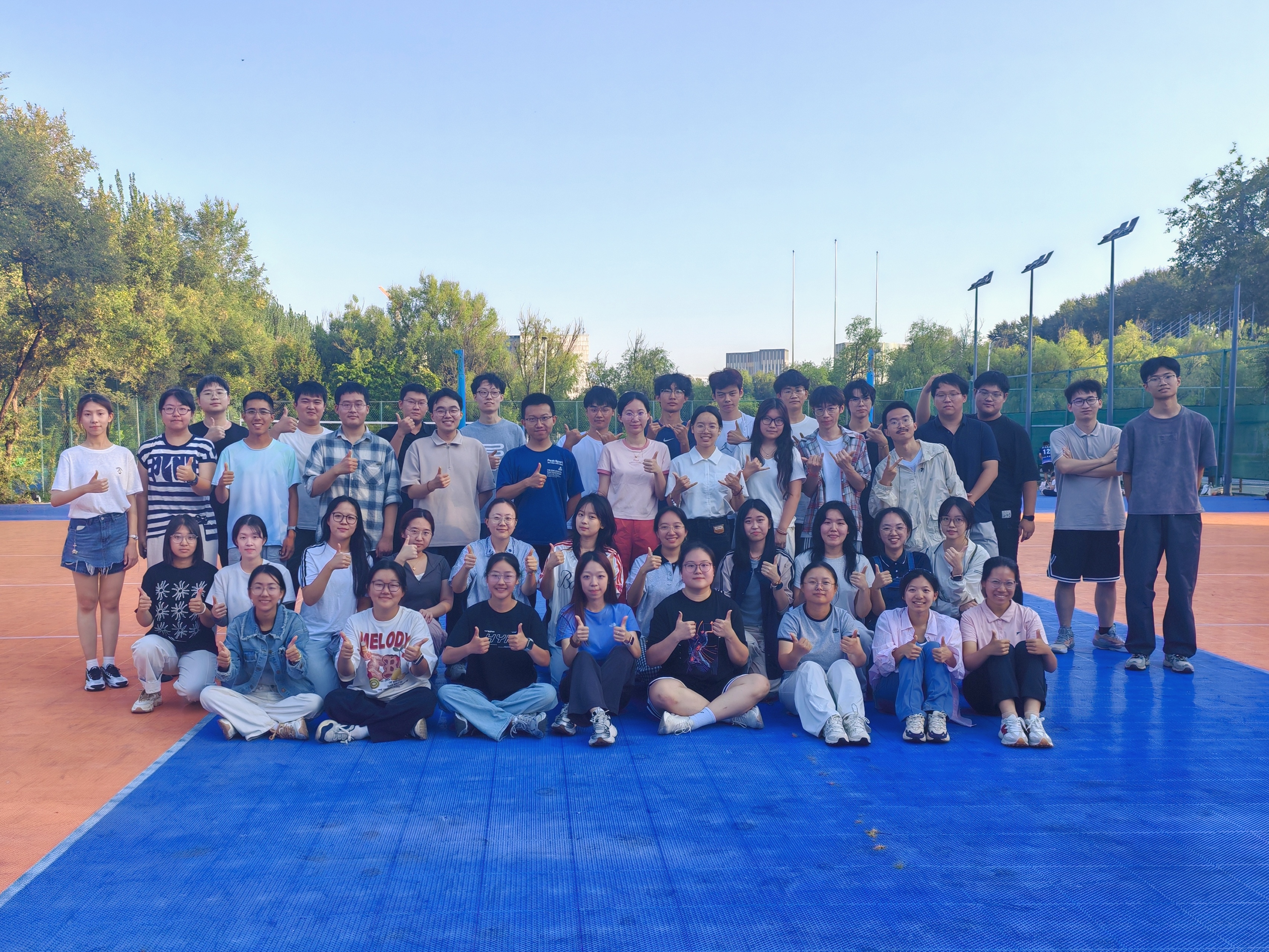 活动伊始,同学们提前抵达排球场进行场地排布及物资整理,各年级同学陆续签到集合,现场氛围轻松热烈。随后,负责人向全体同学说明活动流程与有关规则,团建活动正式开始。