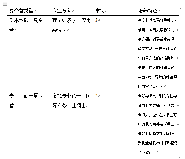 2017年夏令营将包括学术型硕士夏令营、专业型硕士夏令营两个分营。学术型硕士夏令营旨在招收有志于从事经济学术研究的优秀毕业生,入学一年可申请硕博连读;专业型硕士夏令营招收有志于在银行、证券、基金、外企及政府部门从事金融、国际商务领域工作的应用型优秀毕业生。在夏令营中表现突出的营员,将授予“优秀营员”称号,获得公司的拟录取资格,获得本科公司的推荐免试资格后可在公司的推荐免试录取中优先选择导师。