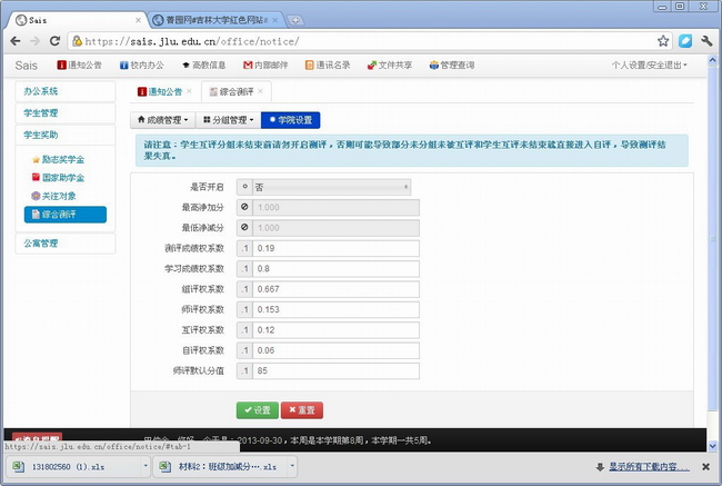 员工的综合素质成绩根据设置的指标获取(附件),满分为100分,最低分不得少于60分。测评时分为自评、互评、师评、组评四个部分。