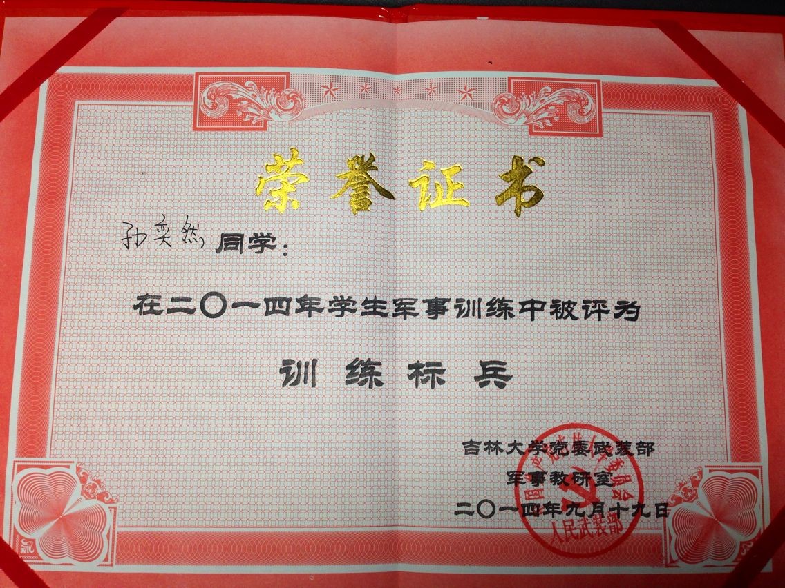 bg大游集团官网2014年员工军事训练标兵获奖证书范本